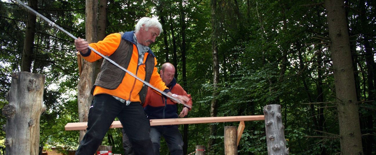Der Startschuss für den Bau dieses Förderprojektes des Wettbewerbes "ErlebnisNRW-Die besten Ideen für Tourismus und Naturerlebnisse in NRW" ist gefallen, die ersten Meter des Holzsteges der in das Gebiet führt, sind gelegt. In den Wochen zuvor haben Ranger der Verkehrssicherung in aufwendigen Vorarbeiten die Trasse vorbereitet. Geplant sind zehn interaktive Themenstationen, die den Gast Themen wie Windwurf, Zeit und andere Dimensionen mit allen Sinnen erleben lassen. Erlebnispfad Der Erlebnispfad liegt an der Landesstraße 15 zwischen Heimbach-Schwammenauel und Schleiden-Wolfgarten. "Der Naturerlebnispfad ist barrierefrei und dabei für blinde, gehbehinderte und gehörlose Menschen ebenso geeignet wie für Menschen ohne Behinderung sowie Jung und Alt. Für das späte Frühjahr im nächsten Jahr haben wir die Eröffnung vorgesehen", so Projektleiter und Beauftragter für Barrierefreiheit, Tobias Wiesen aus der Nationalparkverwaltung. Der bereits im Wegeplan von Beginn an berücksichtigte Naturerlebnispfad wurde mit Verbänden, Institutionen und Menschen mit Behinderung eng abgestimmt. Zunächst gewähren unterschiedliche Höhen auf einem zirka 200 Meter langen Holzsteg vielseitige Blickwinkel in die Natur, die in zwei Meter Höhe am Rand einer Windwurffläche gipfeln. Stationen Weiter geht es auf einem 1.300 Meter langen Weg, immer wieder unterbrochen durch Ruhe-, Forschungs- und Erlebnisstationen. "Bei dem Bau des Steges haben wir aus ökologischen Gründen auf Betonfundamente verzichtet und mit bodenfreundlichen 1,30 Meter langen Schraubfundamenten gearbeitet", so der Leiter der Nationalparkverwaltung Henning Walter. Die gesamten Projektmaßnahmen finden in enger Abstimmung mit dem amtlichen und ehrenamtlichen Naturschutz statt. "Bei der guten Zusammenarbeit im Vorfeld ist deutlich geworden, dass die ökologischen Belange auch bei solchen Maßnahmen angemessen berücksichtigt werden", bestätigt Lothar Gerhards von der Unteren Landschaftsbehörde des Kreises Düren. Zweite Ausbaustufe Der "Wilde Weg" ist die zweite Ausbaustufe des barrierefreien Naturerlebnisraumes Wilder Kermeter, der 2011 im Herzen des Nationalparks Eifel eröffnet wurde. "Die Anstrengungen vieler Akteure auf dem Weg die Nationalparkregion Eifel zur Top-Naturerlebnisregion für Alle zu entwickeln, erhält mit dem "Wilden Weg" einen neuen wichtigen Meilenstein", erläutert Michael Lammertz, Fachgebietsleiter Kommunikation und Naturerleben aus der Nationalparkverwaltung den vorangegangenen Prozess. Das Projekt ist bei einem Gesamtvolumen von knapp 1,1 Millionen Euro zu 80 Prozent gefördert, wobei 50 Prozent von der EU "Europäischer Fonds für regionale Entwicklung" (EFRE) und 30 Prozent vom Land NRW getragen werden. Der Nationalparkverwaltung bzw. dem Landesbetrieb Wald und Holz NRW bleibt damit ein Eigenanteil in Höhe von 20 Prozent. Foto: A. Simantke, Nationalparkverwaltung Eifel