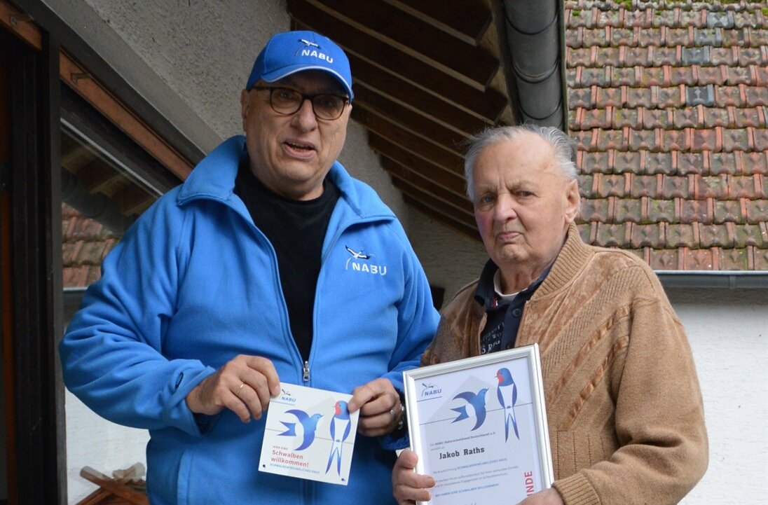 Am 6. November 2021 durfte Norbert Pützer vom NABU Euskirchen das Haus von Jakob Raths als schwalbenfreundliches Haus auszeichnen. Jakob Raths ist mit 95 Jahren sicherlich einer der ältesten Schwalbenfreunde in Nordrhein Westfalen.