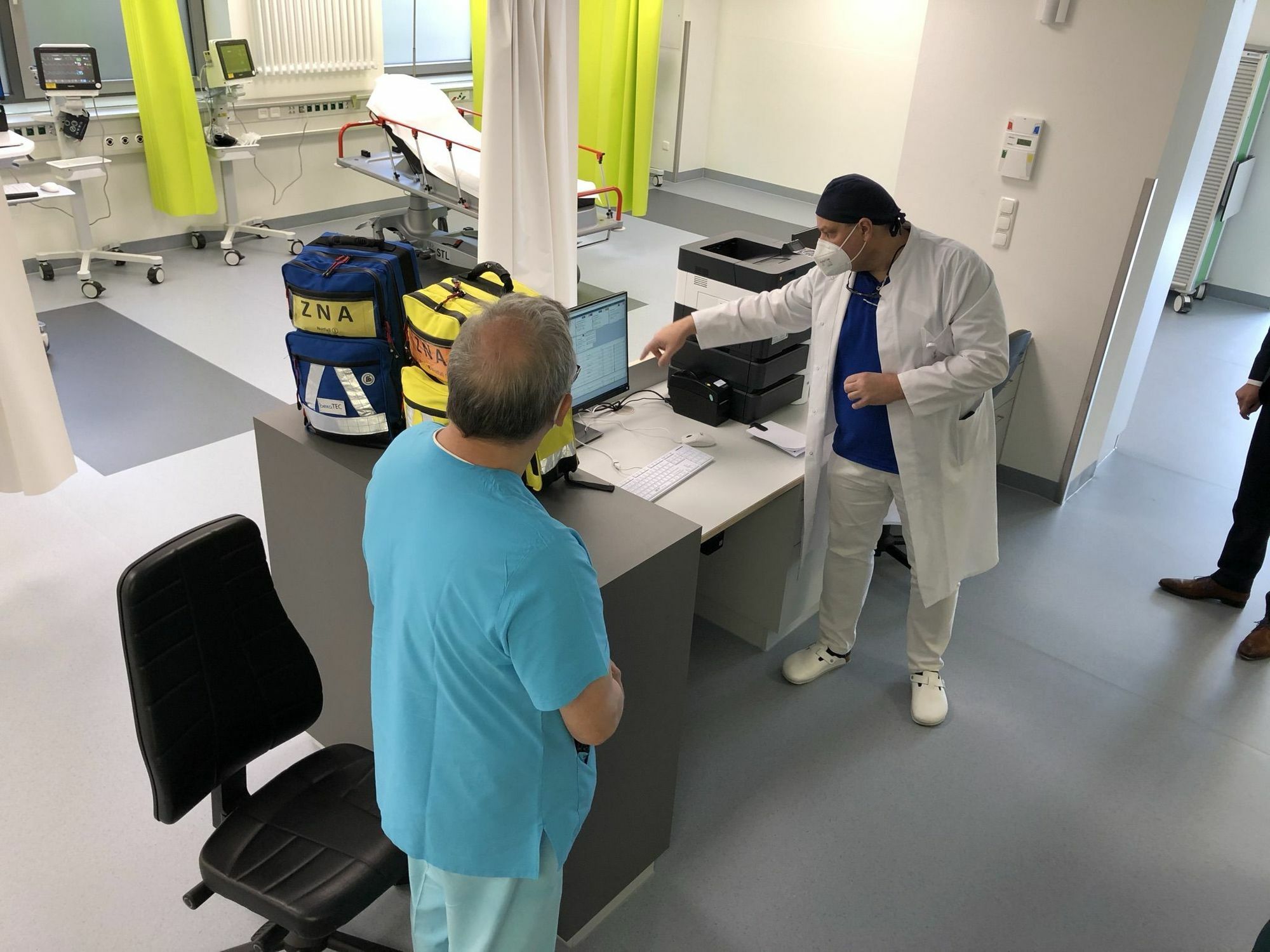 Eine weitere wesentliche Neuerung ist nach Auskunft von Geschäftsführer Manfred Herrmann die modern ausgestattete Beobachtungsstation, die über sechs Betten verfügt. Sie ermöglicht eine 24 Stunden-Überwachung von Notfallpatienten und erleichtert die Entscheidung, ob der Patient das Krankenhaus verlassen kann oder stationär verbleiben muss. Durch moderne Software, die auch über Schnittstellen zum Rettungsdienst verfügt, ist man jederzeit über die Situation des Patienten im Bilde. »Sie zeigt auch an, ob ein Angehöriger wartet«, so Dr. Münch. Laut Markus Thur wurden zudem auf der neuen ZNA acht neue Arbeitsplätze geschaffen.