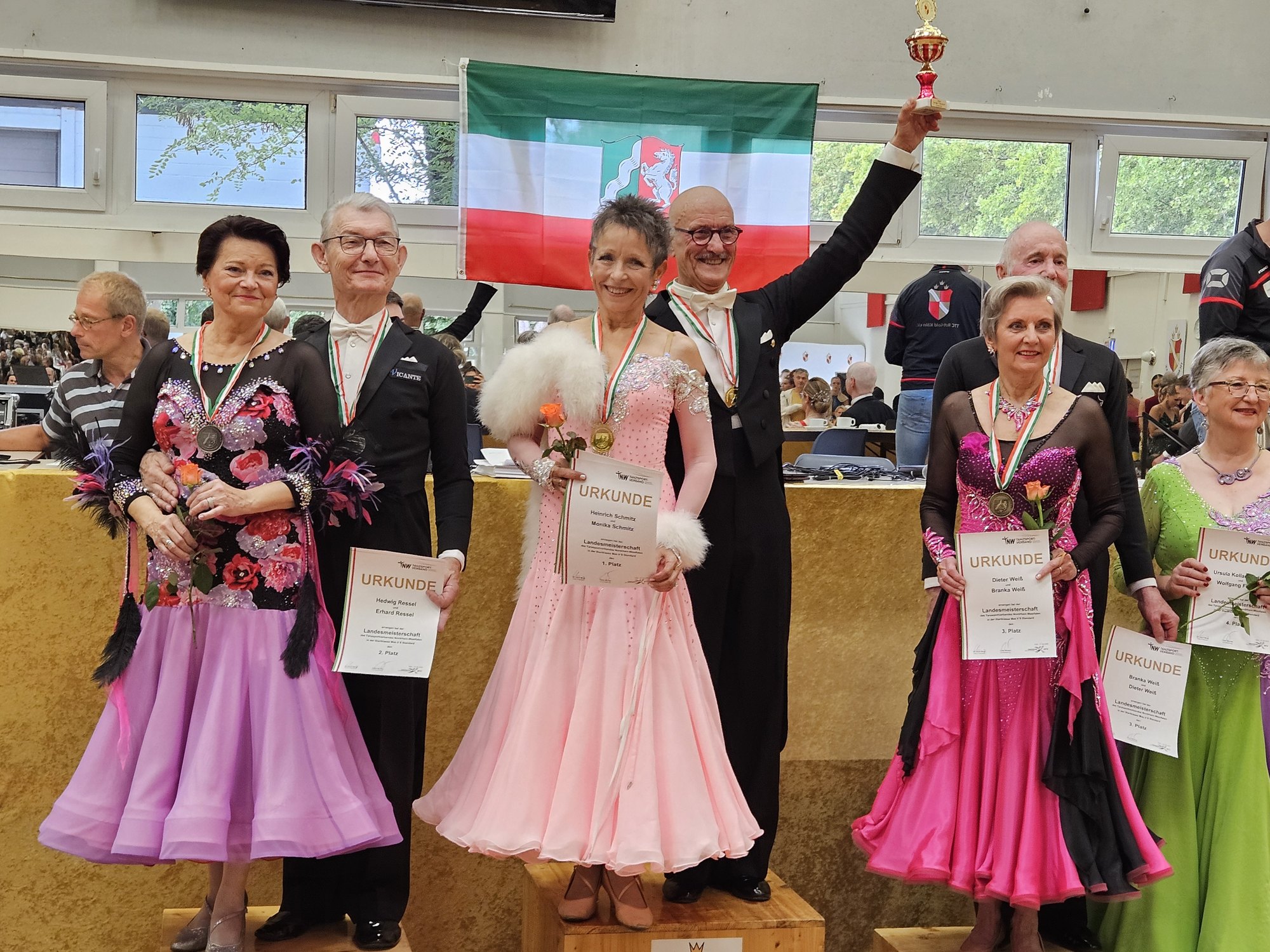 In ihrer Klasse, MAS V S Standard, gehen wieder mehr Paare an den Start, seitdem das Eingangsalter für beide Partner auf 70 gesenkt wurde. So sind auch in der Top-Altersklasse des DTV noch attraktive Wettbewerbe möglich, sowohl für die Beteiligten als auch für die Zuschauer. Begeistert verfolgte das Publikum in Köln die Darbietungen der Latein- und Standardtänze. Für das Ehepaar Schmitz brachte die Veranstaltung in Köln den siebten Landesmeister-Titel. So dekoriert werden sie am Samstag, 18. Oktober bei den Deutschen Meisterschaften in Hamburg antreten.