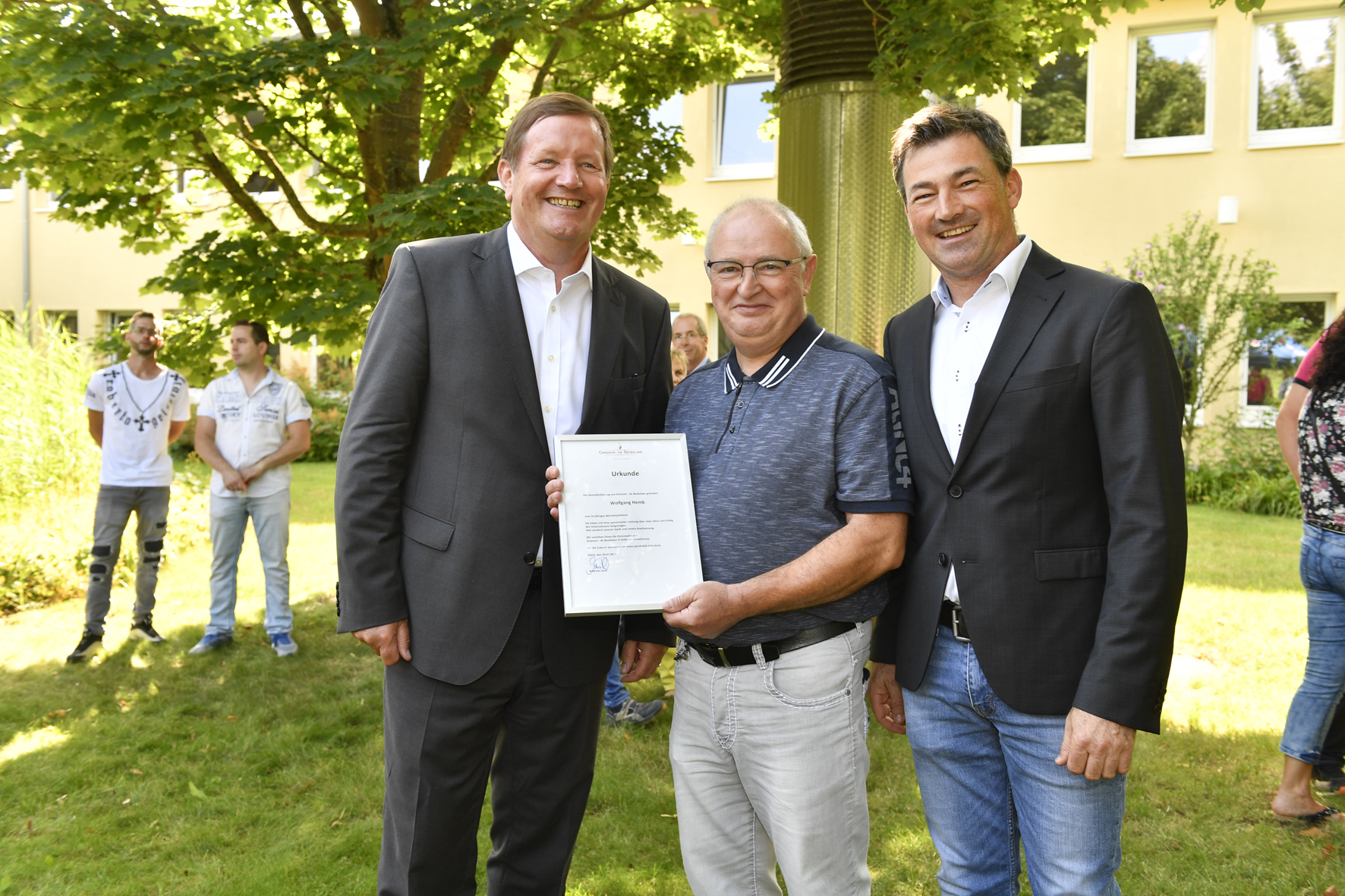 Die Verabschiedung von Wolfgang Hemb nahmen viele Laudatoren zum Anlass, auf die gemeinsam erlebten Jahrzehnte zurückzublicken: Als Wolfgang Hemb am 28. Juli 1969 als 14-jähriger "Bäckerjunge" bei "Griesson" in Kobern begann, stand die Inbetriebnahme der ersten Produktionslinie für gefüllte Lebkuchen am neuen Standort Polch kurz bevor. Von Beginn seiner Tätigkeit an interessierte sich der Allrounder für die verschiedensten Themen der Gebäckproduktion. In den folgenden Jahren wuchs der Standort Polch beständig. Jedes neue Gebäude und jede neue Produktionslinie brachten neue Aufgaben für Wolfgang Hemb mit sich. Insbesondere die enge Zusammenarbeit mit Heinz Gries in den Anfangsjahren begründet die starke Verbundenheit mit dem Chef und dessen Familie. Wenn Wolfgang Hemb auf fünf Jahrzehnte bei GdB zurückblickt, erinnert er sich gerne daran, dass er immer für die Firma, aber auch die Firma für ihn und seine Familie da war. Sein jüngerer Bruder Alois trat ein Jahr nach ihm in das Unternehmen ein, und auch er ist GdB bis jetzt treu geblieben. In den Anfangsjahren des Aufbaus waren 16-Stunden-Schichten nicht unüblich. "Mit einem Lebensarbeitszeitkonto hätte ich bereits im Alter von 45 Jahren in Rente gehen können", scherzt Wolfgang Hemb gerne. Nach der Weiterbildung zum Süßwarentechniker beauftragte ihn Heinz Gries mit der Unterstützung der neuen Kollegen beim Aufbau des Werks in Kahla/Thüringen. Ein Jahr lang pendelte er mit anderen Kollegen zwischen Polch und Kahla und leistete einen wichtigen Beitrag zur erfolgreichen Erstproduktion der "Griesson Soft Cake" in Kahla. Zurück in Polch übernahm er als Schichtleiter und später Teamleiter Schlüsselpositionen im Werk und betreute zahlreiche Sonderprojekte. In den letzten beiden Jahren war es ihm und der Unternehmensleitung ein besonderes Anliegen, seinen reichen Erfahrungsschatz und sein Fachwissen an die Kollegen weiterzugeben. Foto: Griesson - de Beukelaer www.griesson-debeukelaer.de