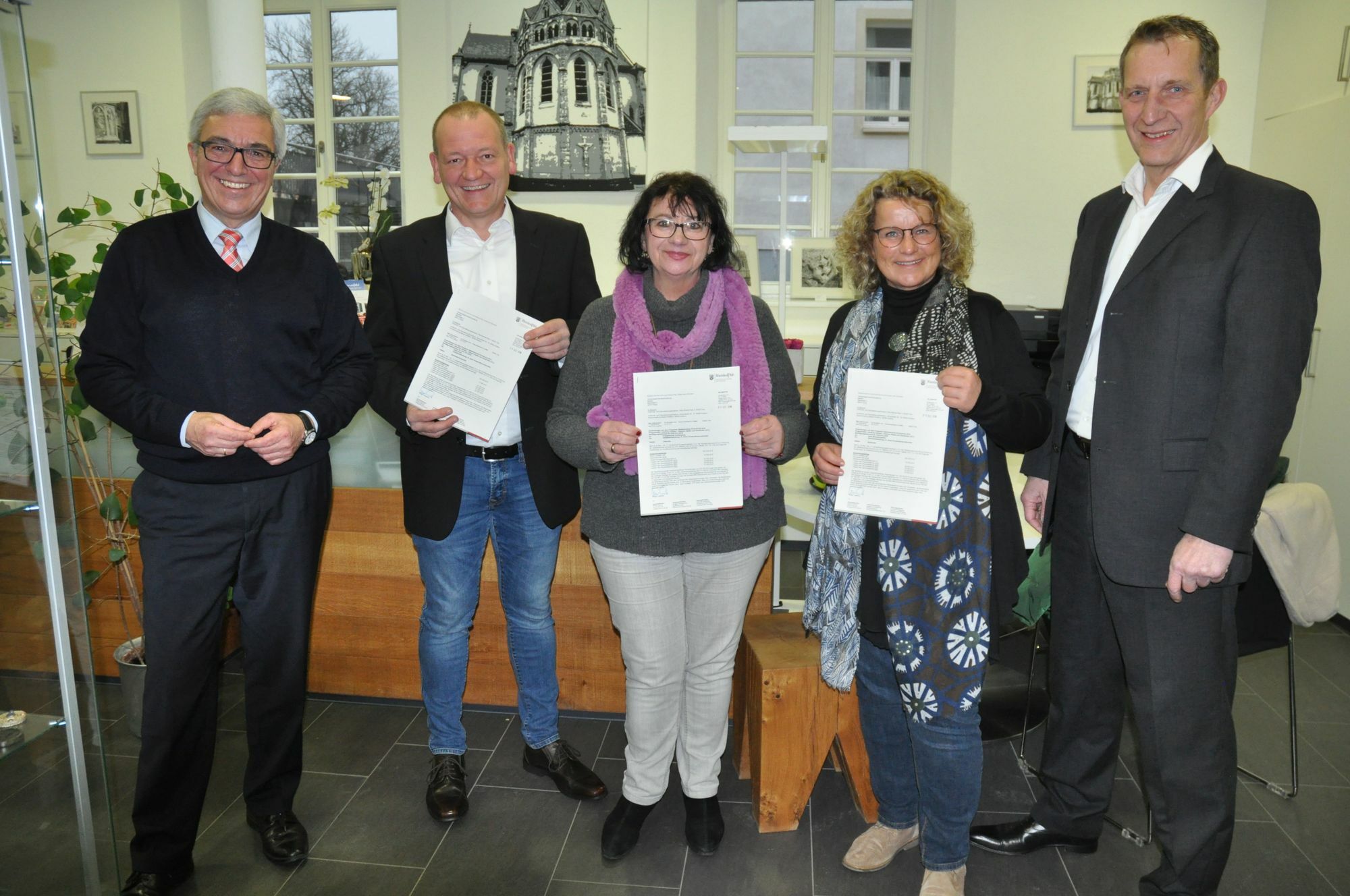 Als der rheinland-pfälzische Innenminister Roger Lewentz auf dem Münsterplatz eintraf war nur das Wetter trüb. Das Mienenspiel von Maximilian Mumm, Bürgermeister VG Maifeld, Claudia Schneider, Stadtbürgermeisterin Münstermaifeld, Rita Hirsch, Ortsbürgermeisterin Ochtendung, und Gerd Klasen, Stadtbürgermeister Polch, ließ eher Sonnenschein erwarten, denn der Gast aus Mainz hatte wichtige Dokumente im Gepäck. Der Innenminister hatte dem Kooperationsverbund Münstermaifeld, Polch und Ochtendung eine Förderung zur städtebaulichen Erneuerung in Höhe von 850.000 Euro bewilligt und entsprechende Bescheide dabei. Gefördert wird aus dem Programm "Ländliche Zentren - Kleinere Städte und Gemeinden" des Bundes und der Länder. Stärkung kleiner Städte und größerer Gemeinden "Wenn mein nordrhein-westfälischer Kollege über die Städtebauförderung berichtet, spricht er meist von Städten, die 100.000 Einwohner und mehr haben. Die Mittel der Städtebauförderung fließen in Rheinland-Pfalz aber nicht alleine in die Oberzentren. Wir stärken mit ihnen auch die kleineren Städte und größeren Gemeinden im ländlichen Raum, die Mittelpunkte ihrer Versorgungsbereiche sind. Wir stellen sie so als lebendige Standorte zum Leben, Wohnen und Arbeiten auf. Wir können hier eine Förderung von immerhin 75 Prozent gewähren", sagte Roger Lewentz. Planungen in Münstermaifeld, Polch und Ochtendung Münstermaifeld erhält 250.000 Euro für den Bereich der Stadtmitte. "Wir haben die Unter- und Obertorstraße in Zusammenarbeit mit dem Landesbetrieb Mobilität auf der Agenda. Das ist ein Thema, das wir schon seit vielen Jahren im Fokus haben", erklärte Stadtbürgermeisterin Schneider, die unter anderem das Gelände der ehemaligen Gärtnerei Heinz und den Bereich um den Eulenturm im Blick hat. Polch wird mit 350.000 Euro gefördert. Geplant sind dort der Erwerb und die anschließende Entwicklung des alten Krankenhauses in der Bachstraße als Haus für Kultur, Jugend und Fortbildung. "Unter dem Titel ,@Viedel‘ wollen wir diesen Bereich für die Zukunft aufstellen. Wenn wir den Erwerb mit einer Förderung von 90 Prozent realisieren, können wir dann schnell an die Umsetzung gehen", so Stadtbürgermeister Klasen. 250.000 Euro für die Ortsmitte fließen zudem nach Ochtendung. Neben dem Raiffeisenplatz soll die Kreuzung Koblenzer Straße/Plaidter Straße/Oberpfortstraße in den Blick genommen werden. "Es ist der Kreuzungsbereich, der verkehrstechnisch gefährlich ist", beschreibt Ortsbürgermeisterin Rita Hirsch die Situation. Hier gibt es Ideen die Verkehrsströme zu entzerren von barrierefreien Übergängen bis hin zu einem Kreisverkehr. Weitere Förderung möglich Die Förderung soll für die drei Kommunen auch kein singuläres Ereignis bleiben. "Bei der Städtebauförderung haben wir die Möglichkeit, weitere Förderbeträge zu bewilligen. Wer die Pläne mit den Mitteln auf den Weg bringt, kann weitere beantragen", so Innenminister Lewentz. Das Programm "Ländliche Zentren - Kleinere Städte und Gemeinden" soll der Umgestaltung und Stärkung der Zentren dienen. Es fördert gezielt die Weiterentwicklung und Neupositionierung von Innenstädten als Handels-, Dienstleistungs- und Wohnstandorte. Foto: Pauly www.mdi.rlp.de