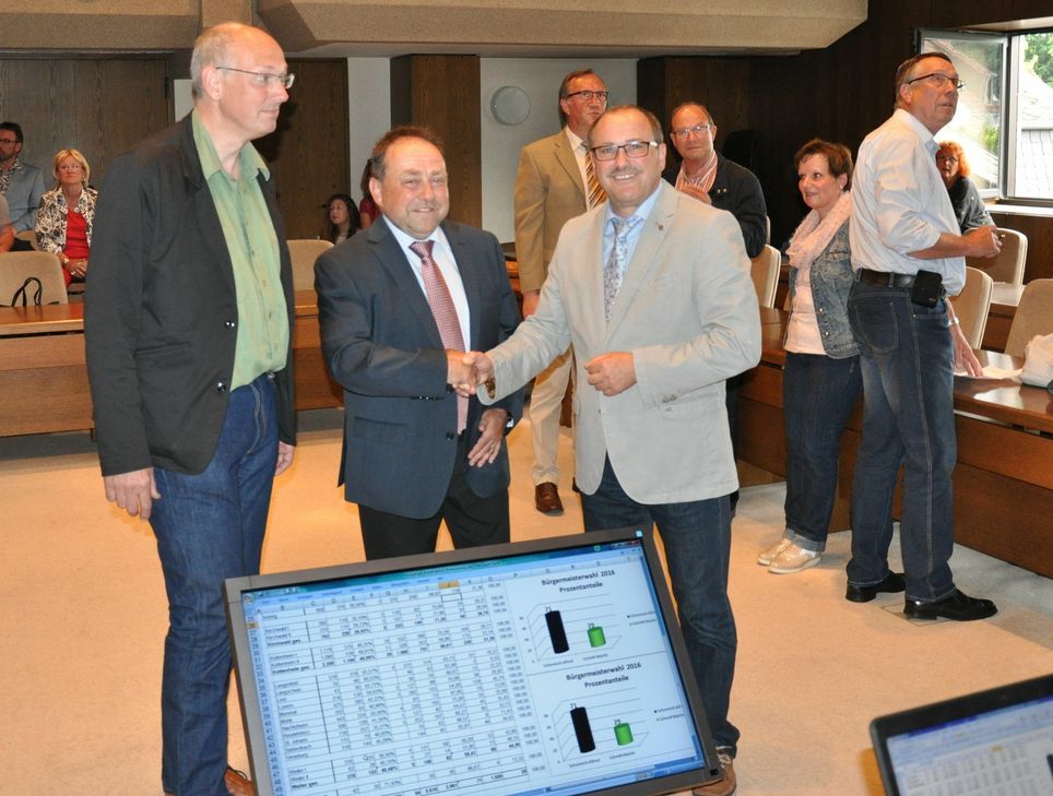 Mit 71 Prozent der Wählerstimmen setzte sich Alfred Schomisch (CDU) gegen Martin Schmitt (Bündnis 90/Die Grünen), 29 Prozent der Stimmen, durch. Damit tritt Schomisch die Nachfolge des amtierenden Bürgermeisters Gerd Heilmann (CDU) an. Die Wahlbeteiligung liegt bei 42,2 Prozent. In einigen Gemeinden liegt die Wahlbeteiligung bei unter 30 Prozent. Foto: Wollenweber