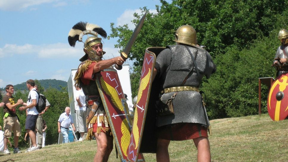 Samstag, 15. Juli, und Sonntag, 16. Juli, jeweils ab 11 Uhr lädt die Römergruppe LEGIO XXII Primigenia Milites Bedenses aus Bitburg die Besucher auf eine authentische Zeitreise in das alte, römische Reich vor 2000 Jahren ein. Mit zahlreichen Mitmachaktionen und Darstellungen bringen Legio XXII Primigenia sowie weitere Darsteller den Besuchern das Leben der Römer auf ziviler und militärischer Ebene näher. Ob Kleidung, Ausrüstung oder Alltagsgegenstände - alles ist antiken Originalstücken oder Textquellen nachempfunden. Das Römerlager bietet zahlreiche Attraktionen, die vom Katapultschießen über Bogenschießen bis hin zu einer römischen Bäckerei und einer Probierküche reichen. Darüber hinaus finden Darbietungen zu den Themen Münzprägung, Bronzegießen, römische Kosmetik sowie eine römische Hochzeit und eine Modenschau statt. Ein besonderer Spaß für die großen und kleinen Besucher sind die kniffligen römischen Spiele sowie Workshops zur Herstellung von Mosaiken und Arbeiten mit Ton. Neu in diesem Jahr, das Kinder-Mitmachprogram zum Thema „Schule in römischer Zeit“. Beim Stockbrotbacken und der Aktion „Römisch kochen für Kinder“ erhalten die kleinen Besucher einen Einblick in die Essgewohnheiten in der römischen Zeit. Im Eintrittspreis für das Römerfest sind bereits alle Vorführungen, Kinderspiele, Stockbrotbacken, Führungen durch das Labor für experimentelle Archäologie, über das Grubenfeld und den Katzenberg sowie der Bustransfer dorthin enthalten. An beiden Tagen öffnet um 10 Uhr auch das Vulkanparkerlebniszentrum „Terra Vulcania“ seine Pforten. Info: www.mayenzeit.de; www.vulkanpark.com. Foto: Stadt Mayen