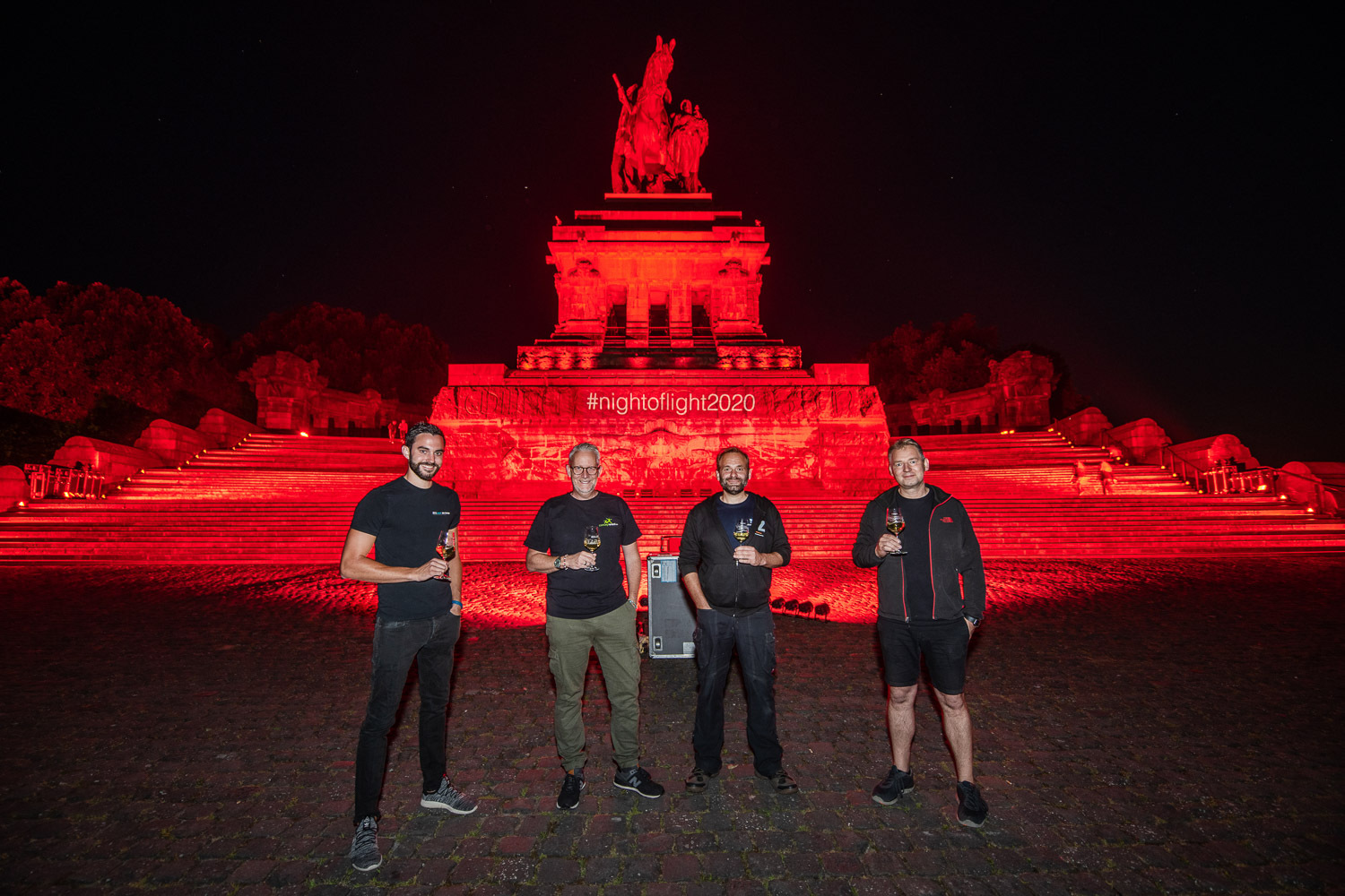 Die vier großen Koblenzer Veranstaltungstechnikfirmen "Actionlight", "Zeusaudio", "Concept-Event" und "EckVent" hatten in einer Gemeinschaftsaktion die drei Monumente in purpurrotes Licht getaucht. Damit waren sie Teil einer mittlerweile europaweiten Aktion der Eventbranche um auf die prekäre Situation aller Firmen nach dem Corona-Lockdown aufmerksam zu machen. Die Organisatoren der sogenannten „Night of Lights 2020“ beschreiben es mit den einfachen Worten „Die Branche sieht rot“. „Wir sind die ersten die vom Karussell geworfen wurden und sind garantiert auch die letzten die wieder drauf dürfen, sofern es uns alle dann überhaupt noch gibt“, so Concept Event Geschäftsführer Christoph Kub, der von vielen Event in Mayen, insbesondre mit der "MY-Gemeinschaft", bekannt ist. Die geltenden Verbote von Großveranstaltungen seien quasi ein komplettes Berufsverbot für alle die in und für die Eventbranche arbeiten. Immer neue Verordnungen machen Veranstaltungen wirtschaftlich unrentabel und das Risiko für den Eventplaner unkalkulierbar.