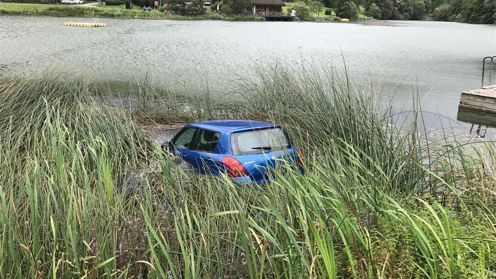 Ein Auto ist am Mittwochmittag, 13. September, in den Riedener Waldsee gerollt.