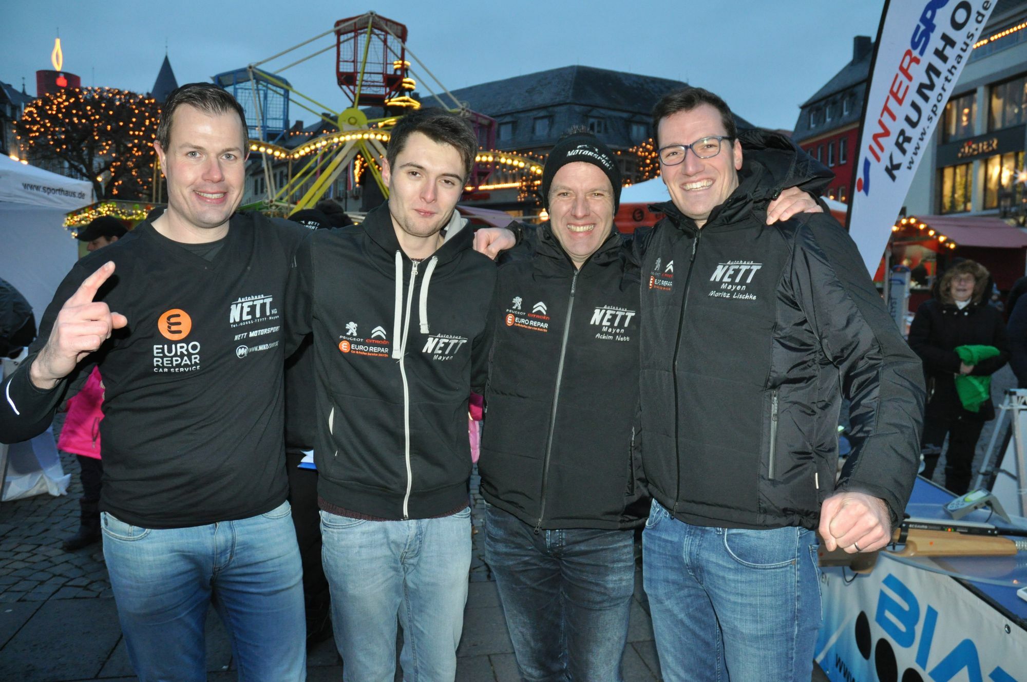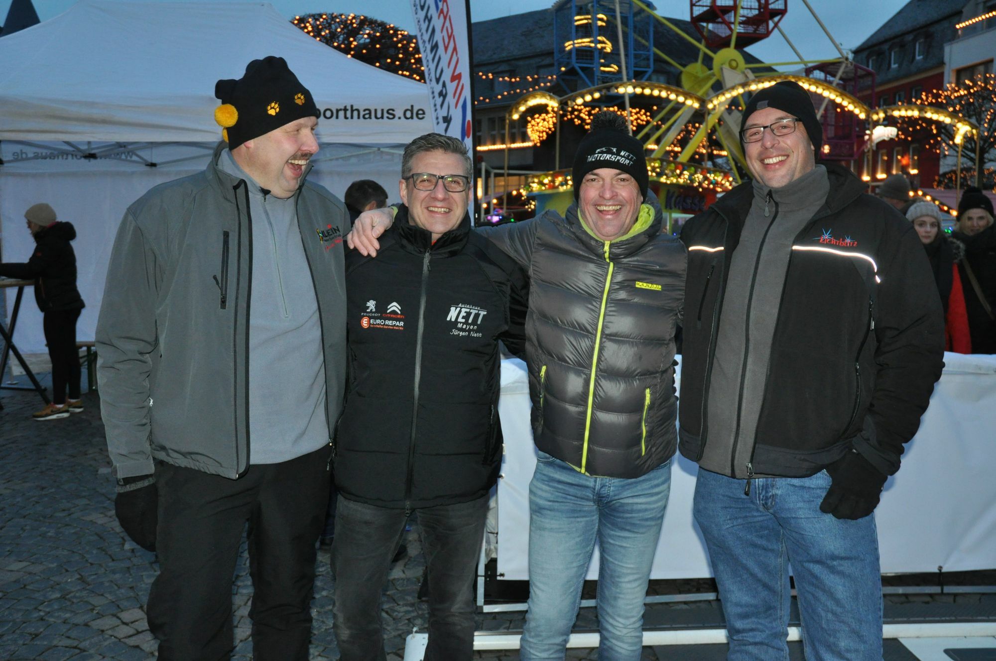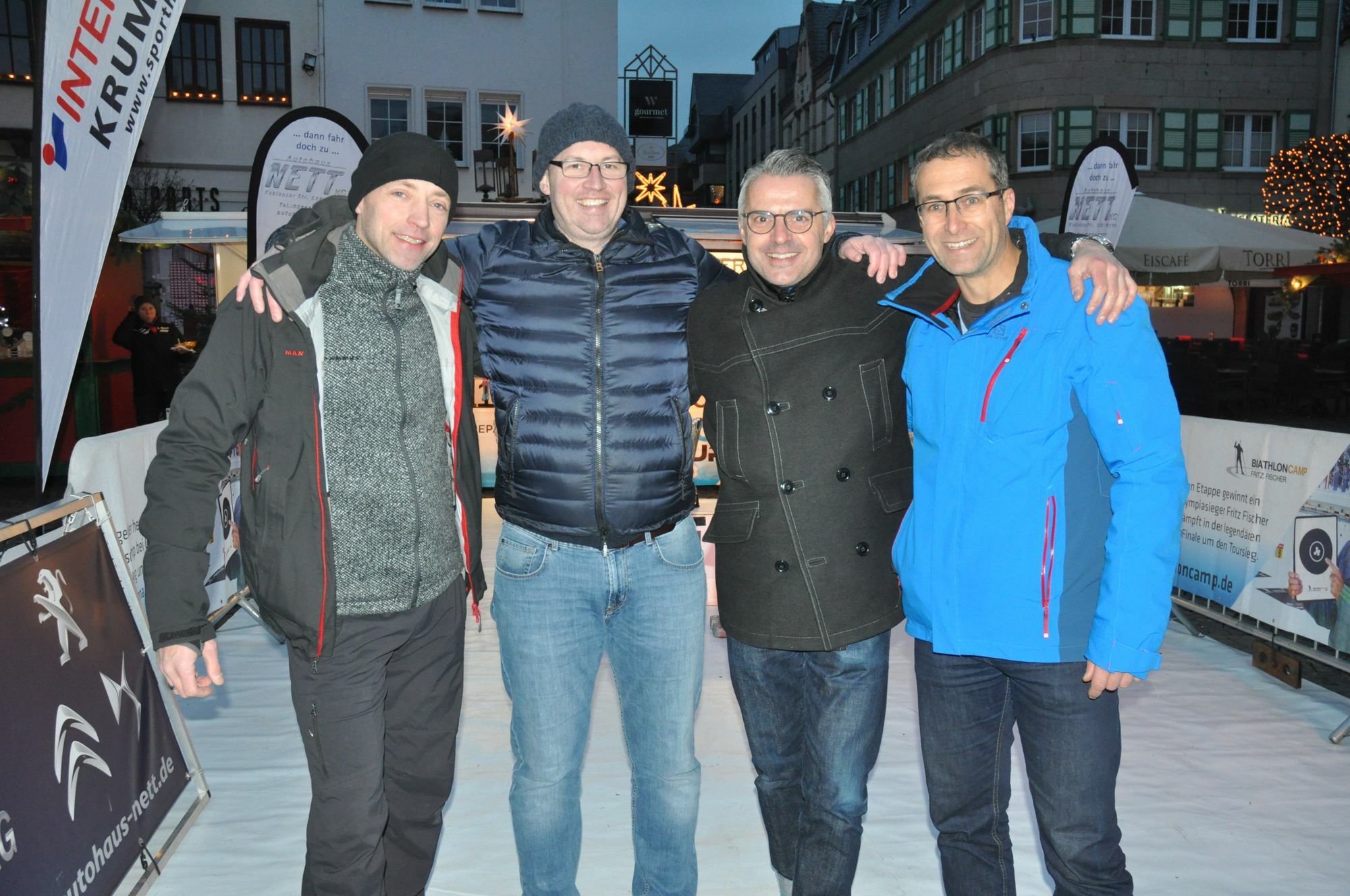 Souverän sicherte sich die Mannschaft um Team-Kapitän Achim Nett erstmals den Etappensieg auf dem Weihnachtsmarkt in Mayen. Mit großem Abstand folgte das Quartett der Hämmerzunft, das allerdings mit Otmar Schacherbauer den schnellsten Einzelathleten in seinen Reihen hatte. Auf dem dritten Platz landete die Mannschaft der MY-Gemeinschaft. "Ein toller Erfolg", kommentierte Dr. Wolfgang Schlags den Platz auf dem Podium. Insgesamt waren 15 Staffeln am Start. Fotos: Pauly www.biathlon-tour.de www.my-gemeinschaft.de