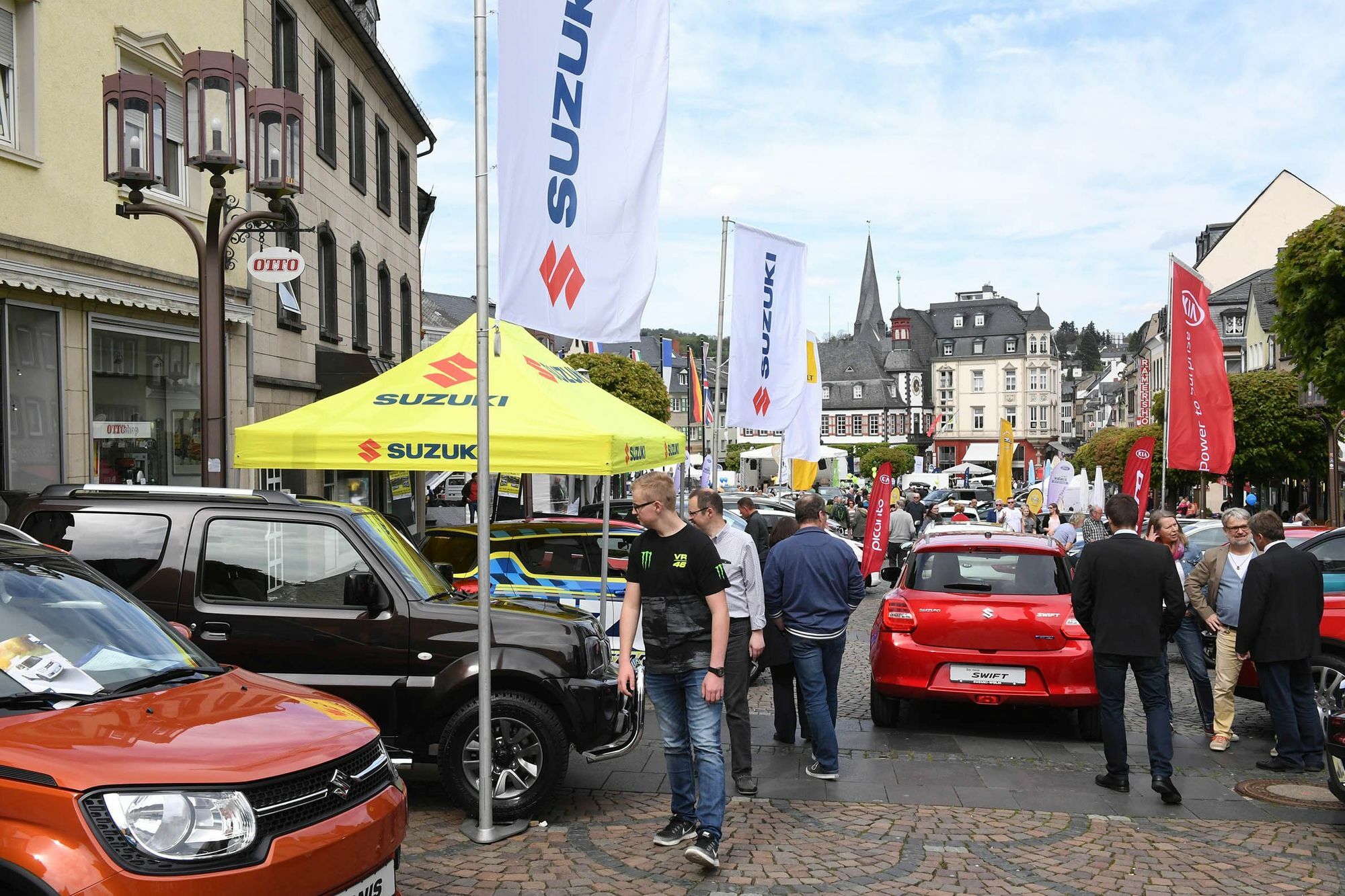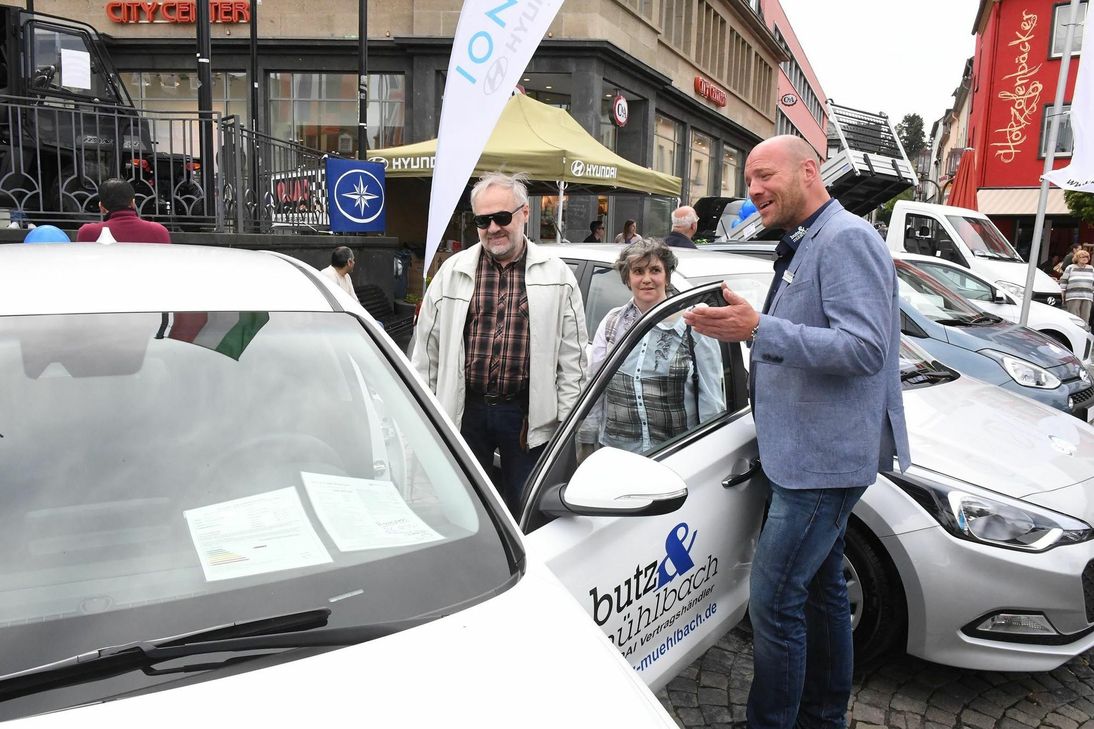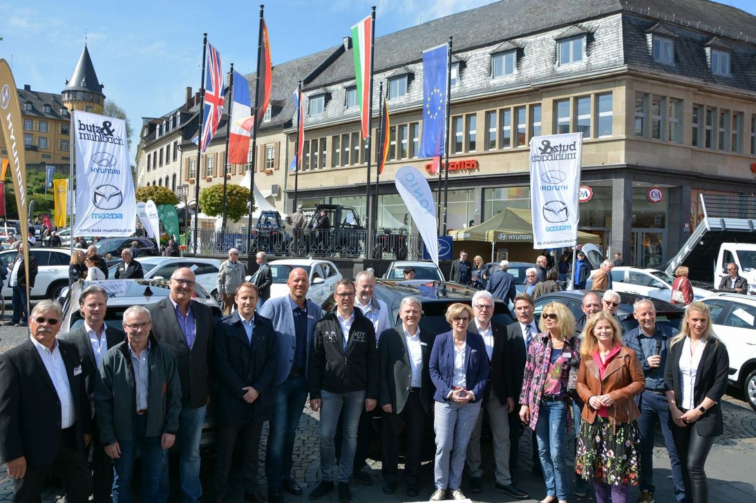 Auch in diesem Jahr gab es wieder Neues: Die Bühne wurde zum Laufsteg umgewandelt und »Royal-Catering« sorgte für die Bewirtung. Moderator Chris Kub hatte zur Unterstützung die charmante Isabelle Holstein mitgebracht. Von dem attraktiven Rahmenprogramm mit Sport-Acts vom Fit-Up-Sportstudio, musikalische Band-Unterhaltung, Clown-Peppino und sportliche Mode vom »Modehaus Küster« zeigte sich auch Beigeordnete Martina Luig-Kaspari, die die »Schau der Superlative« in Vertetung für Oberbürgermeister Wolfgang Treis am Samstagmorgen eröffnete, begeistert. Sie lobte das Engament der Autohändler und stellte heraus, das es gelingen muss, Mayen als Ganzes - Innenstadt und Gewerbegebiet - voranzubringen. Von Beginn flanierten die großen und kleinen Besucherinnen und Besucher zwischen dem Modellen umher und Beratung sowie Probesitzen war gefragt. Fotos: Kruft/Walz
