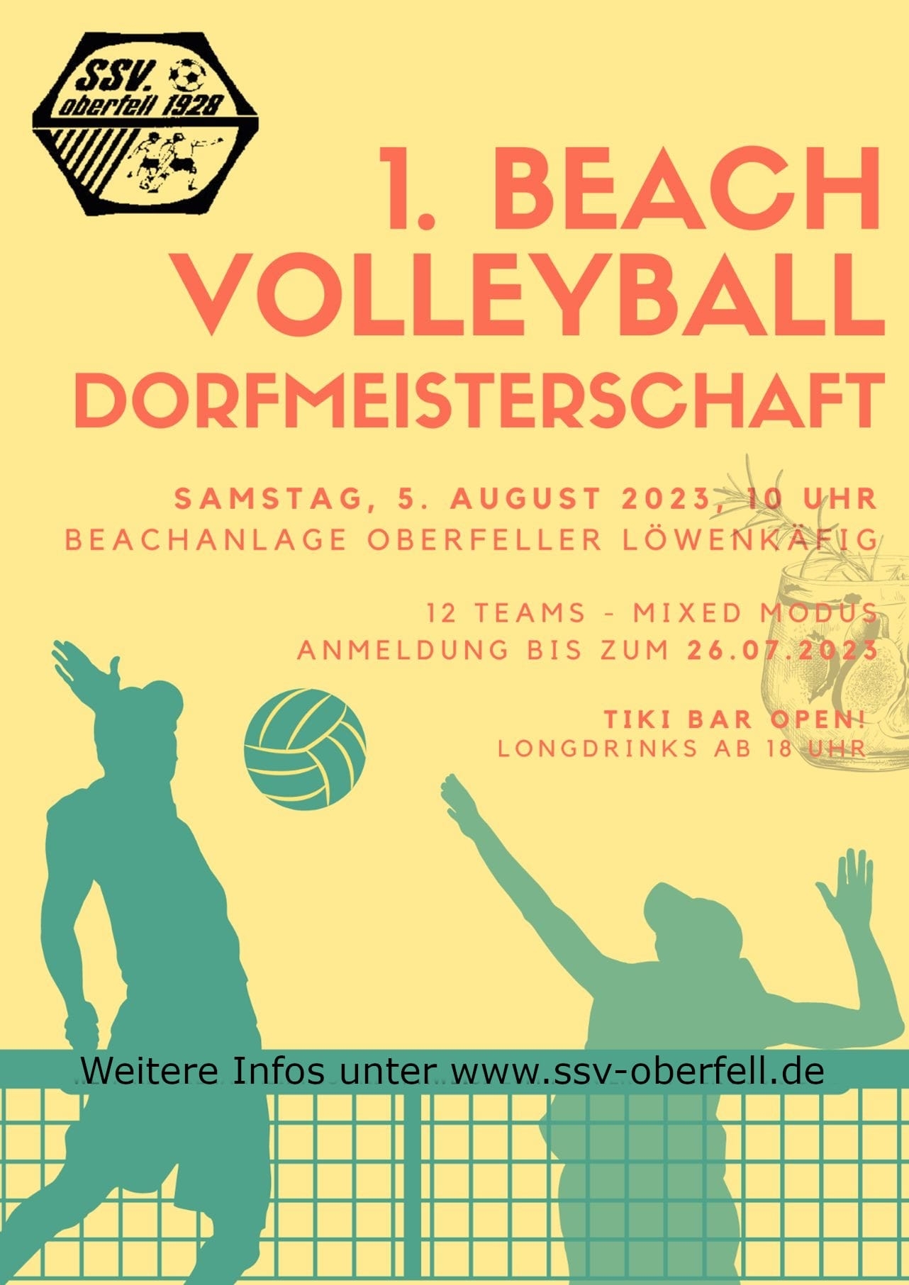 Jetzt noch schnell anmelden - die letzten Startplätze sind verfügbar Wichtig: pro Team mindestens vier Spieler (Mixed-Team), Voraussetzung ist, dass eine weibliche Person mitspielt. Nähere Infos unter www.ssv-oberfell.de Für das leibliche Wohl ist bestens gesorgt!