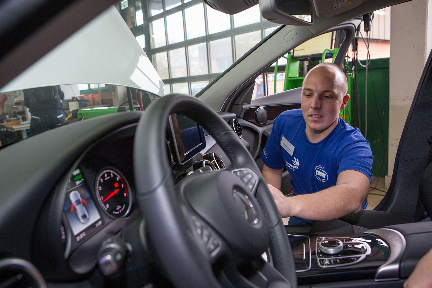 Fehlerquellen waren gezielt durch die Prüfungskommission in die Wettkampffahrzeuge "eingebaut" worden und mussten durch die besten Nachwuchshandwerker aus 16 Bundesländern aufgespürt werden. Daneben ging es um Messarbeiten an Stromkreisläufen oder Fahrzeugteilen. "Das war anspruchsvoll", resümierte Christian Schneider, der im Unternehmen "Rinaldi Automotive GmbH & Co. KG" in Mendig ausgebildet wurde. Der Kfz-Betrieb ist sowohl auf Motorsport spezialisiert wie auch auf Wartung, Reparatur oder Restaurierung von Straßenfahrzeugen – ob mit 700 PS, 50 Jahre alt oder für den ganz normalen Alltag. Dieses breite Spektrum kam Christian entgegen, der sich allerdings an der Rennstrecke und mit "seinen" Rinaldi-Sportwagen am wohlsten fühlt. "Mit dem Lehrvertrag für diesen Ausbildungsplatz ging ein Traum in Erfüllung, den ich schon seit Kindertagen gehegt habe. Und nun der Bundessieg – Wahnsinn!", freute sich der sichtlich bewegte Kfz-Enthusiast. Direkt an die Lehre schloss Christian den Meisterkurs in Vollzeit an. Und so büffelt er bei der Handwerkskammer Koblenz für den Meisterbrief. Foto: Klaus Herzmann www.rinaldi-racing.de www.hwk-koblenz.de