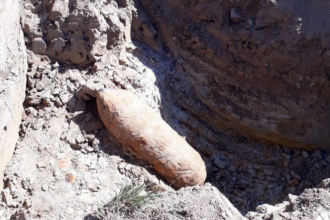 Nach Auswertung von Luftbildern hat der Kampfmittelräumdienst gezielt auf einem Feld bei Wolken gesucht und ist am Dienstag, 11. September, in etwa 1,5 Meter Tiefe auf eine "gut erhaltene" britische Fünf-Zentner-Bombe aus dem Zweiten Weltkrieg gestoßen.