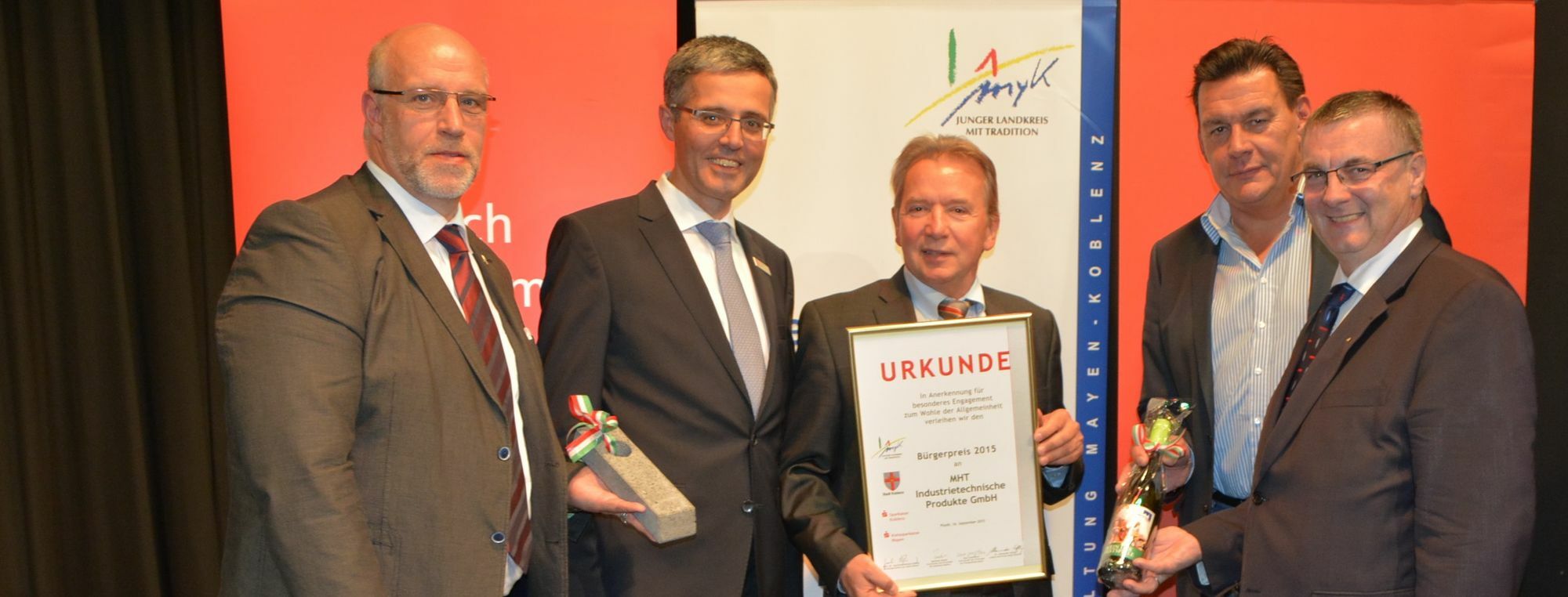 »Die diesjährigen »kleinen und großen« Preisträger tragen die Kultur in ihren Herzen und möchten so viel wie möglich an andere weitergeben«, so Landrat Dr. Alexander Saftig in seiner Laudatio. Ein gutes Beispiel dafür, wie Kultur Menschen verbindet und wie man sie an andere weitergeben kann, sind die »Nachwuchskünstler« von »Musical On Stage« aus Plaidt und »kidz4kids« aus Weitersburg. Für die jungen Leute gab es jeweils 1.000 Euro. Dritter im Bunde der Ausgezeichneten ist ein Unternehmen in unserer Region, das sich im Bereich Kultur engagiert. Mit einer Urkunde, als Anerkennung gedacht, wurde die MHT Unternehmensgruppe aus Mayen geehrt. Helmut Sareyko und Michael Sareyko bereichern besonders die Kultur im Umfeld von Mayen. Das Geschäftsfeld der MHT Unternehmensgruppe liegt schwerpunktmäßig in der Industrietechnik, im Immobilienmanagement und im Betreiben von Tankstellen. Helmut Sareyko ist Mitbegründer der Veranstaltergemeinschaft Mayen, einer Kooperation der MHT Unternehmensgruppe, der Kreissparkasse Mayen, der Stadt Mayen und des WochenSpiegel Mayen. Jährlich werden große und kleine Veranstaltungen, viele auch als Benefizveranstaltungen, in Mayen unterstützt. Um nur ein paar zu nennen: Open-Air-Kino auf dem Grubenfeld, Stein- und Burgfest, Improvisationstheater Springmaus, Klassik in Mayen und vieles mehr. Insgesamt wurden in den letzten 20 Jahren bereits rund 250 Veranstaltungen unterstützt. Sareyko renovierte auch die verfallenen Lokschuppen in Mayen, die über viele Jahre als »Art Arena Lokhallen« eine zentrale Adresse für Tanz und Musik, Klassik und Kunst waren. »Ich nehme die Auszeichnung gerne als einen Teil der VG Mayen an«, bedankte sich Helmut Sareyko. »Schließlich sind wir alle gleichberechtigte Partner.« Foto: Kruft