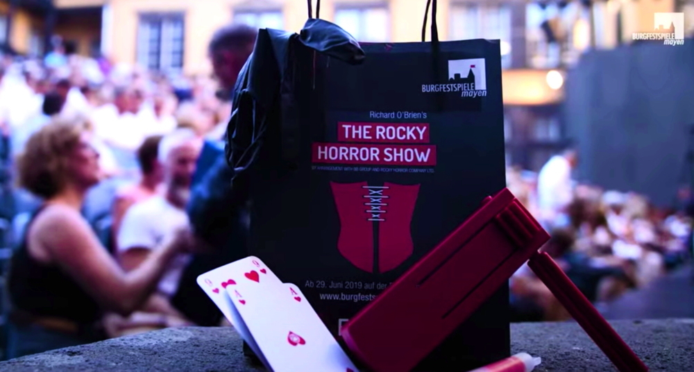Die Homepage ist fast in gewohntem Umfang unter der Adresse www.burgfestspiele-mayen.de wieder online verfügbar. Schritt für Schritt werden nun noch alle Funktionen der Seite weiter ergänzt. Aber schon jetzt gibt es wieder viele Informationen zu den Produktionen und den Künstlerinnen und Künstlern des kommenden Sommers. Um sich die Wartezeit bis zum nächsten Sommer etwas zu verkürzen, können Burgfestspielfans außerdem jetzt noch einmal in Erinnerungen schwelgen. Der junge Filmemacher Lukas Grenzhäuser hat ganz aktuell einen neuen Video-Clip zur Erfolgsproduktion "The Rocky Horror Show" erstellt. Den Link zum Video gibt es ebenfalls auf der Homepage. Wie alle Videos der Burgfestspielproduktionen steht der Trailer auf der Website im Rückblick zur Saison 2019. Screenshot: © Burgfestspiele Mayen