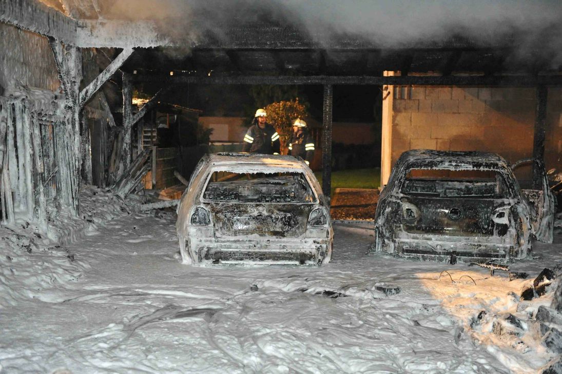Carport brennt - zwei Autos zerstört