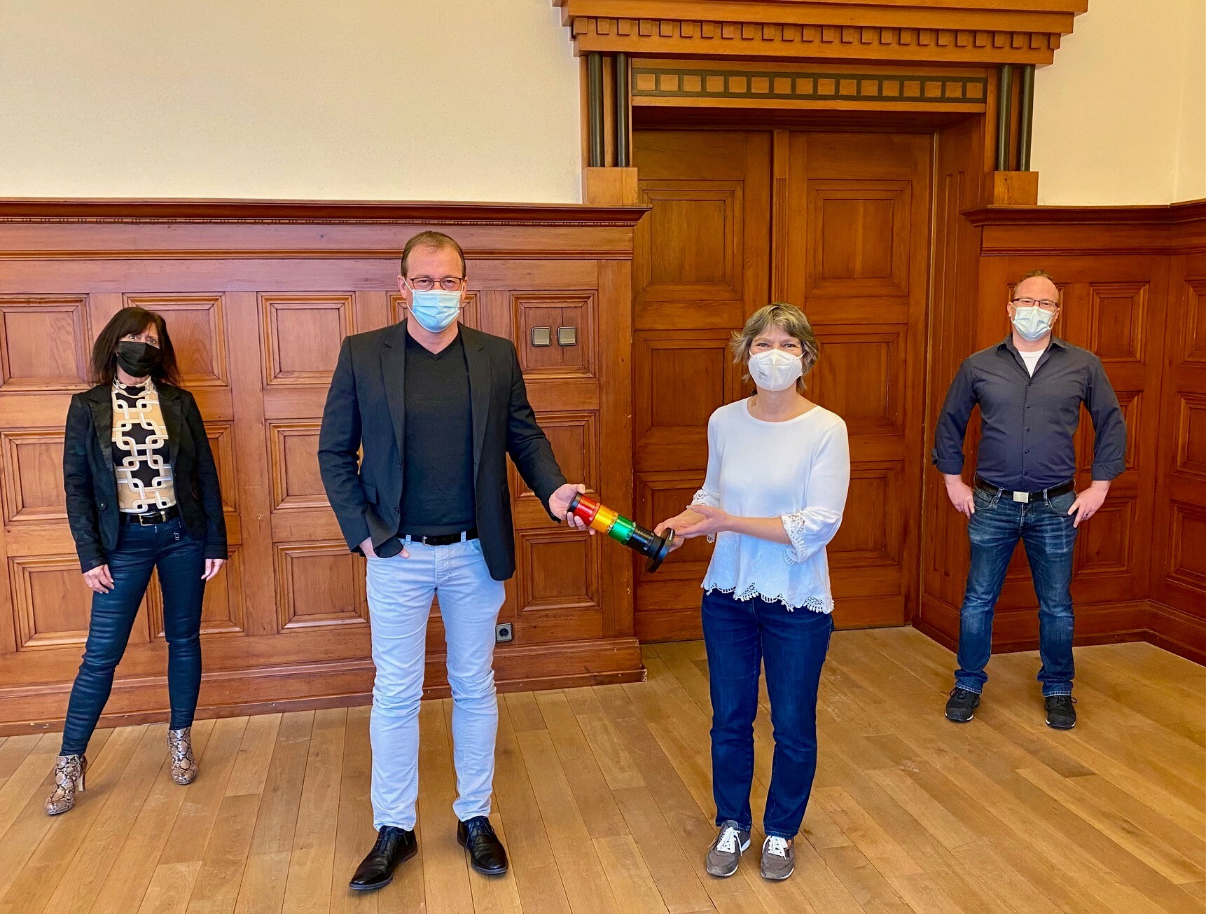 Die CO2-Ampeln in Klassenräumen erzeugen nach Ansicht der Verantwortlichen der Verbandsgemeinde ein Bewusstsein beim Lehrpersonal und insbesondere auch den Schülerinnen und Schülern für die Anreicherung der Raumluft mit Kohlendioxid und ausgeatmeten Aerosolen. Die Ampelgeräte analysieren in regelmäßigen Abständen die Raumluft und verdeutlichen durch den Wechsel der Farbanzeige von grün über gelb bis rot, wann durch Öffnen der Fenster gelüftet werden sollte. "Das Wohl unserer Kinder liegt uns sehr am Herzen. Wir haben Anfang des Monats für jedes Schulkind und für jede Lehrkraft kostenfreie medizinische Masken bereit gestellt. Die Anschaffung der CO2-Ampeln ist ein weiterer Schritt, um während und nach der Pandemie eventuelle Gefahren unserer Kinder zu minimieren", so VG-Bürgermeister Jörg Lempertz bei der Übergabe der CO2-Ampeln. Foto: VG Mendig / Kutz www.mendig.de