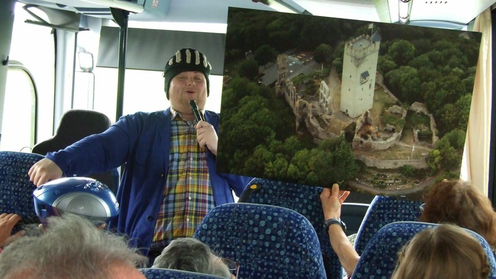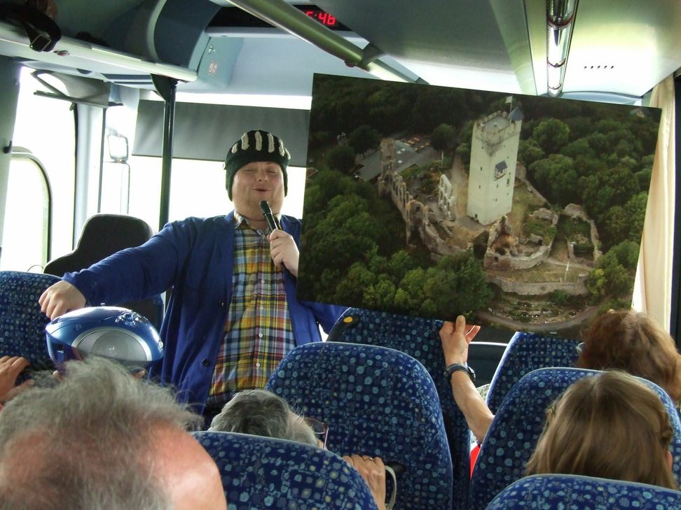 Kramosta beleuchtete kabarettistisch Informationen, die er über die jeweiligen Orte recherchiert hat. Beispiele: "Leutesdorf feiert dieses Jahr 600 Jahre - das wird eine lange Feier." oder "Brohl-Niederlützingen ist zu schwer auszusprechen, wenn sie nachts besoffen in Bad Breisig in ein Taxi steigen, daher wurde es mit der Zeit zu Brohl-Lützing." Zwischendurch wurden lange Wege mit Sketchen und musikalischem Kabarett überbrückt. Der Comedian dazu: "Das war bislang textlich meine schwierigste Aufgabe: Infotainment. Wahre Fakten erkunden und humoristisch verpacken. Ich hoffe, es ist gelungen." Diese Möglichkeit an einer Comedybus-Tour teilzunehmen besteht noch von Juni bis September an jedem vierten Sonntag im Monat. Abfahrt ist um 15 Uhr an der Mittelrheinhalle Andernach. Informationen und Tickets unter www.eifel-fahrt.de Foto: privat www.ferienregion-laacher-see.de