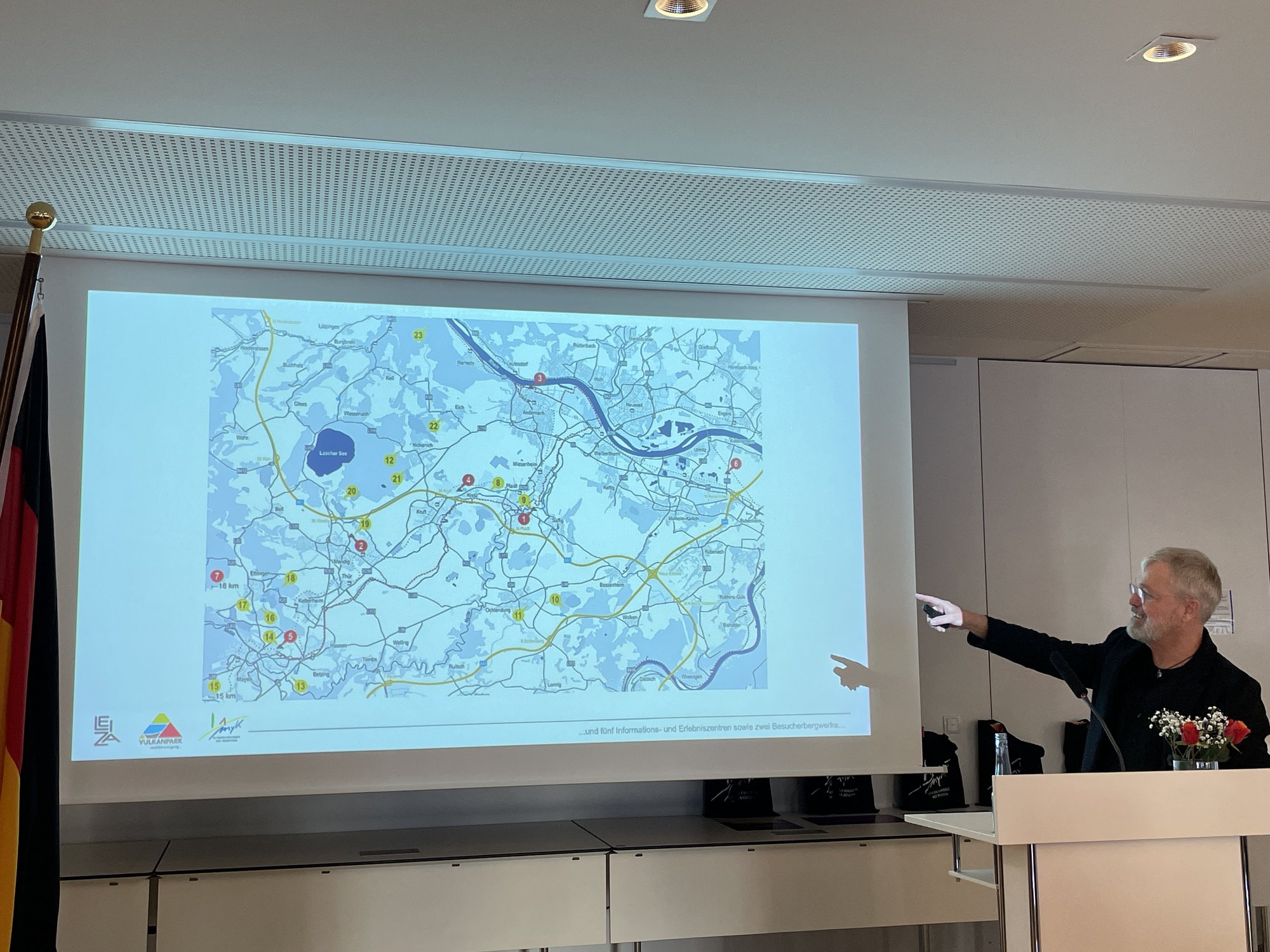 Darüber hinaus präsentierte der Heimatbuchautor und wissenschaftliche Mitarbeiter des Leibniz-Zentrum für Archäologie in Mayen, Dr. Holger Schaaff, dem Publikum während seines kurzweiligen Vortrags die Entstehungsgeschichte der Vulkanpark GmbH. Anlässlich des bevorstehenden Jubiläums im kommenden Jahr nahm er dabei vorrangig Bezug auf die Forschungsarbeit im Vulkanpark Osteifel sowie die zahlreichen Landschaftsdenkmäler, die heute besucht werden können.