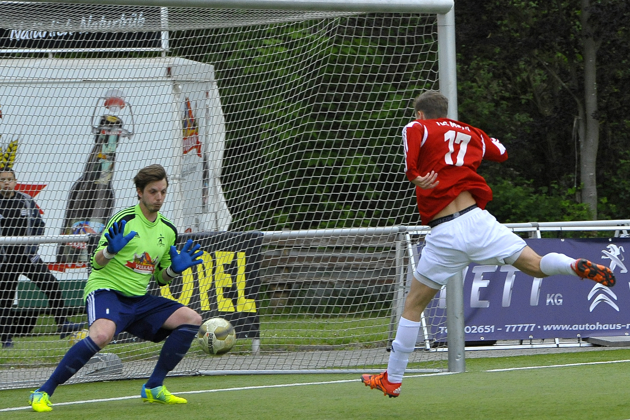 In einer vom TuS Mayen über weite Strecken dominierte, aber letztlich in der Offensive von der SG Eintracht gut kontrolliertt, sah es bis in die Nachspielzeit nach einem Sieg für die Mendiger aus, ehe Nicolas Ring (90.+2) - nach einer perfekten Flanke von Eike Mund - den Ausgleich erzielen konnte. Die Führung der Gastgeber hatte John Rausch (34.) erzielt, der den Verein vermutlich verlassen wird, weil er sich in der kommenden Saison auf seine Futsal-Karriere konzentrieren will. Die Gastgeber machten nach der Führung die Räume geschickt eng und konnten auch nach einer Gelb-Roten-Karte für Niklas Heinemann (62., Foulspiel und Meckern) die Mayener weit von ihrem Tor weg halten - Thomas Nürnberg (58.) hatte sogar die große Chance auf 2:0 zu erhöhen, als er aus kurzer Distanz knapp am Tor vorbeizielte. "Wir waren leider nicht konzentriert genug, um unsere in der zweiten Halbzeit gefühlten 90 Prozent Ballbesitz zu nutzen. Mendig hat uns mit seiner defensiven Marschroute nur zu Fehlern zwingen wollen. Wir haben aber wieder unsere Fitness bis zum Schlusspfiff gezeigt", bilanzierte TuS-Trainer Thomas Reuter. Mit dem Punktgewinn konnte SG-Triner Thomas Esch allerdings auch gut leben. "Das war der Punkt, der noch zum Klassenerhalt gefehlt hat. Und das haben die Jungs heute mit zehn Mann geschafft. Von den letzten zehn Spielen haben wir nur zwei verloren und bereits am vorletzten Spieltag die Klasse gehalten", war Esch stolz auf das Geleistete. In der kommenden Saison wird der Interimstrainer absprachegemäß seinen Dienst beim FC Plaidt antreten. "Es war eine schöne, es war eine geile Zeit und es hat richtig Spaß gemacht", fasste er seinen Einsatz als "Retter" zusammen. Der Nachfolger Eschs steht seit dem Wochenende auch fest: Es ist Florian Stein (27), der in der laufenden Saison noch bei der Spvgg Burgbrohl in der Oberliga spielt und in Mendig seine erste Trainerstelle im Seniorenbereich antritt. "Er ist ein absoluter Fußballfachmann. Seine Philosophie hat Hand und Fuß. Wir hoffen mit ihm langfristig etwas aufzubauen", so Frank Schmitz, Sportlicher Leiter der SG. Fotos: Seydel www.tusmayenfussball.de www.sgeintrachtmendigbell.de
