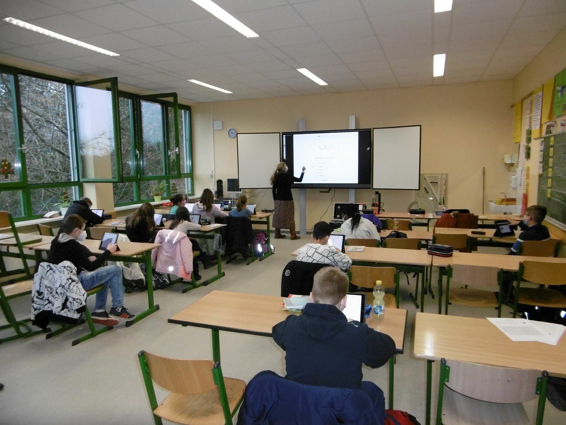 Bereits ab dem Jahr 2021 wurden auch digitale Tafeln für den Unterrichtseinsatz getestet und schließlich über einen Rahmenvertrag zentral beschafft. Dabei wurden die alten Kreidetafeln abgebaut und durch die digitalen Nachfolger komplett ersetzt. Nach einer kurzen Schulung konnten die Lehrkräfte in den Schulen den normalen Unterricht fortsetzen und gleichzeitig interaktive Angebote auf der digitalen Leinwand aufrufen und in den Unterricht integrieren. Auch ohne Strom sind die Tafeln nutzbar, da die Seitenflügel als Whiteboards funktionieren.