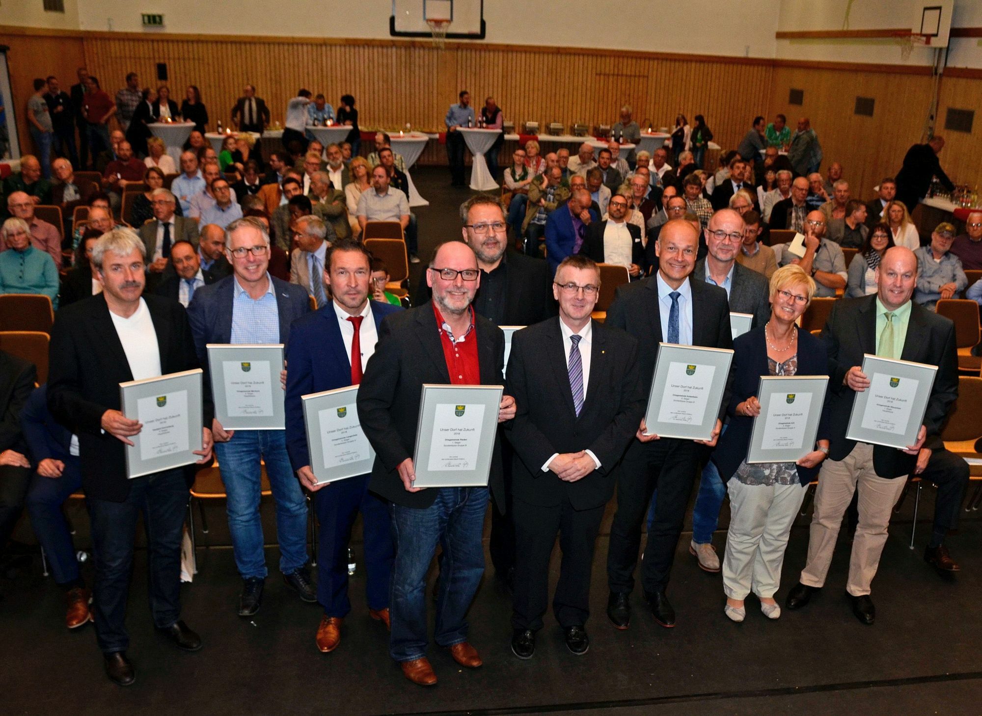 Der Kreiswettbewerb teilte sich in Haupt- und Sonderklasse, wobei in der Sonderklasse Gemeinden bis 750 und 750 bis 3.000 Einwohner separat von der Jury bewertet wurden. In der Hauptklasse mit Gemeinden, die erstmalig am Wettbewerb teilnahmen, siegte Wierschem vor Mertloch und Mayen-Kürrenberg. In der Sonderklasse mit Gemeinden, die bereits in den Vorjahren beim Gebietsentscheid dabei waren, landete Volkesfeld vor Langenfeld und Arft. Bei den Gemeinden mit über 750 Einwohnern hatte Rieden die Nase vorn. Kottenheim und Waldesch belegten die Plätze zwei und drei. Rieden erzielte die höchste Gesamtpunktzahl aller Teilnehmer und ist damit Kreissieger. Neben dem offiziellen Kreiswettbewerb wurden auch die 16 Gewinner im Sonderwettbewerb "Dorfverschönerung durch Vereine" für Maßnahmen ausgezeichnet, die zu einem schöneren Ortsbild beitragen. Gewinne in der Gesamthöhe von 5.000 Euro wurden an die Vereinsvertreter übergeben. Foto: Kreisverwaltung Mayen-Koblenz www.kvmyk.de