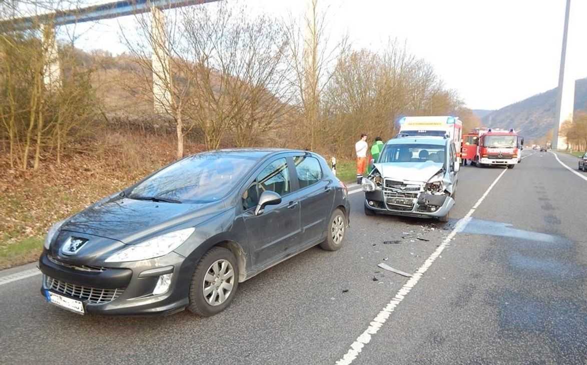In einer Schlange von rund 20 Fahrzeugen mussten die ersten Fahrzeuge bremsen, weil ein Pkw von der B 411 kommend sich über die Beschleunigungsspur auf die B 49 in Richtung Koblenz eingefädelt hatte. In der Fahrzeugschlange löste dies eine zunächst schwache, aber eine sich immer weiter verstärkende Bremswelle - ein sogenannter "Dominoeffekt" - aus. Ein Pkw der Schlange musste hart bremsen. Das Bremsmanöver wurde offensichtlich von dem nachfolgenden Fahrer zu spät bemerkt und es kam zum ersten leichten Auffahrunfall. Der dahinter fahrende Pkw-Fahrer konnte noch reagieren und ohne Berührung hinter den beiden Autos anhalten. Dem nächsten Autofahrer in der Reihe gelang dies nicht mehr und er fuhr so heftig auf den Vordermann auf, dass in beiden Fahrzeugen die Insassen leicht verletzt wurden. Unter anderem war auch die Freiwillige Feuerwehr Dieblich an der Unfallstelle im Einsatz. Der entstandene Sachschaden wird auf rund 17.000 Euro geschätzt. Foto: Polizei