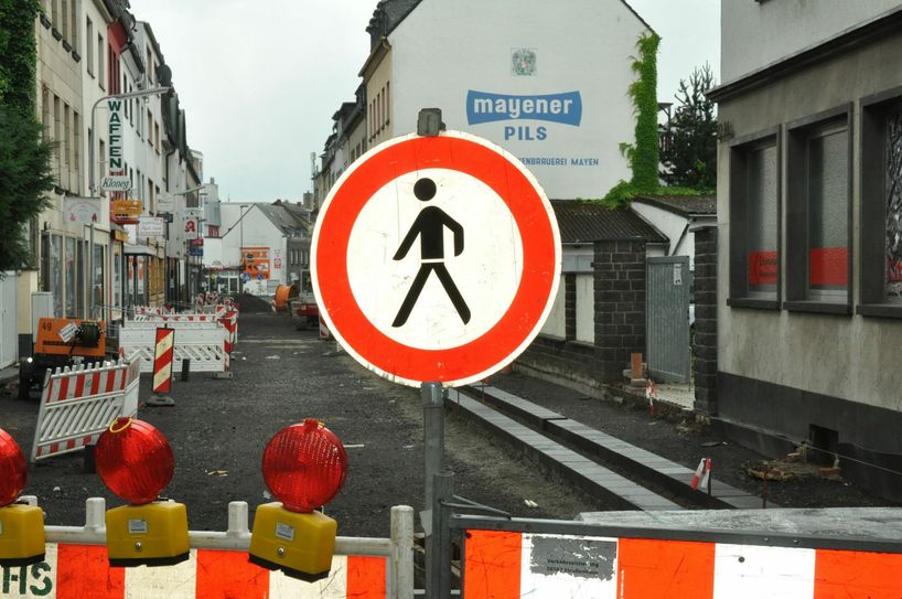 Für Kunden und Anwohner ist der Zugang mit gewissen Einschränkungen möglich, so die Stadtverwaltung. Verboten sei allerdings der reine Durchgang durch die Straße! "Ich bitte, das Wegschieben von Absperrungen zwecks Durchgangs zu unterlassen. Die ausführende Baufirma öffnet die Baustelle abschnittsweise für Fußgänger, wann immer das möglich ist. In den übrigen Zeiten dürfen sich keine Menschen in den Baustellen befinden, da dies überaus gefährlich ist und keinerlei Versicherungsschutz besteht", erläutert Oberbürgermeister Wolfgang Treis. "Ich habe Verständnis dafür, dass die Baustelle den Menschen viel Geduld abverlangt. Doch mit Abschluss der Maßnahme erhalten wir eine top-sanierte Neustraße", so das Mayener Stadtoberhaupt. Ein detaillierter Plan, der die einzelnen Sanierungsabschnitte und Verkehrsumleitungen zeigt, ist unter www.mayen.deverfügbar. Foto: Pauly