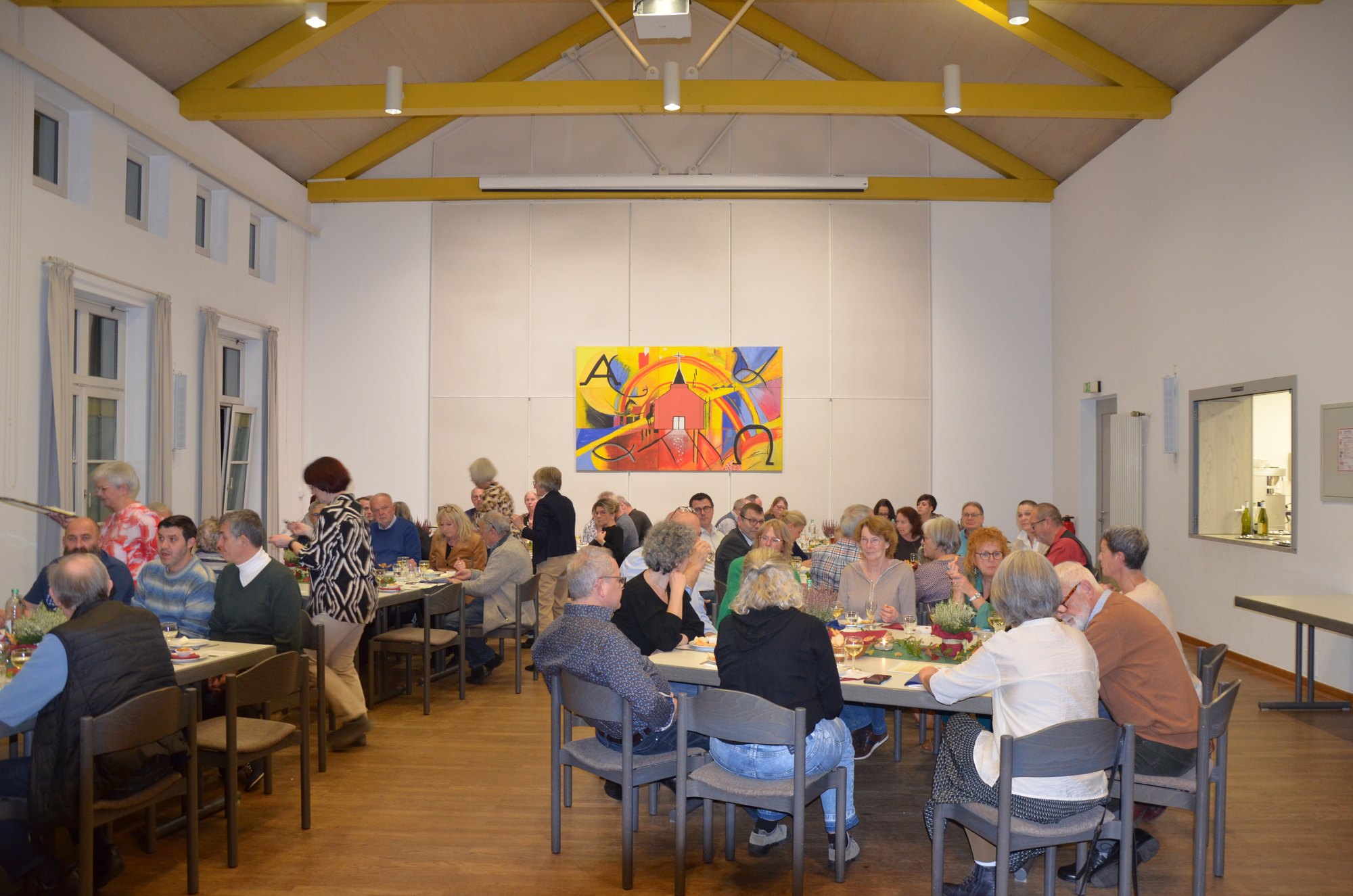 Mayen. Zum traditionellen Wein-Käse-Abend des Deutsch-Französischen Freundschaftskreises Mayen-Joigny trafen sich über 60 Mitglieder und Gäste im „Lukashaus“ in Mayen, um erlesene französische Käsesorten in Begleitung passender französischer Weine zu genießen. Und das war noch nicht alles, weitere Überraschungen folgten. Vorsitzender Christoph Rosenbaum begrüßte als Vertreter der Stadt Mayen den Beigeordneten Thomas Schroeder und alle im Saal, dankte dem Vorstand für die vielfältigen Vorbereitungen und wünschte einen vergnügsamen Abend. Mit einem herb-fruchtigen Crémant, auf Wunsch mit Cassis ergänzt, wurden die Gäste auf das Kommende eingestimmt. Zu jeder Käsesorte, ob  zartschmelzender Ziegenkäse „Chablichou“ oder „ Comté 18 mois“, würziger  „Reblochon fermier“ oder „Tomme au Pinot Noir“, wurden die  passenden Weine, Chardonnay  oder Pinot Gris de Bourgogne, Rotweine der Cotes du Rhone,  serviert. Vorstandsmitglied Marc Schemionek, der auch die anschließende Tombola moderierte, stellte  jede Käsesorte vor mit der für sie typischen Charakterisierung. Zur guten Stimmung trug  das  Duo „aber hallo“, Alli (Keyboard und Gesang ) und Katharina (Gesang), bei, das ehrenamtlich gespielt hat. Mit schwungvoller und abwechslungsreicher Musik unterhielten sie das Publikum und luden schließlich auch zum Tanzen ein. Eine weitere Besonderheit war das von Christoph Rosenbaum vorbereitete Quiz über Frankreichs Kultur und Politik, was den Gästen ebenso gut gefiel  wie die Tombola mit typisch französischen Produkten.  Es war spät nach Mitternacht, als die letzten Gäste in guter Laune den Saal verließen.