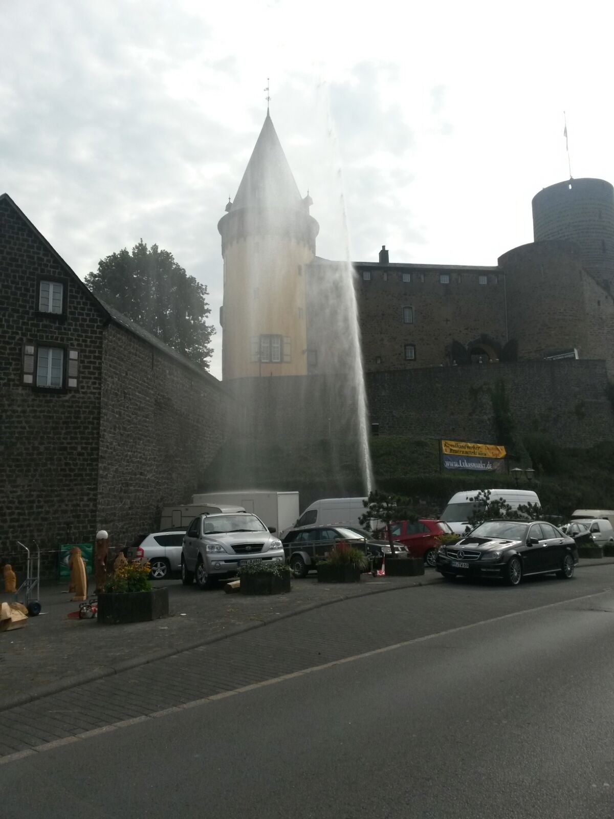 Einem offensichtlich unachtsamem Autofahrer haben am Samstagmittag die Besucher des Stein- und Burgfestes in Mayen das Aufsteigen einer Wasserfontäne - ähnlich einem "Geysir" - zu verdanken gehabt.