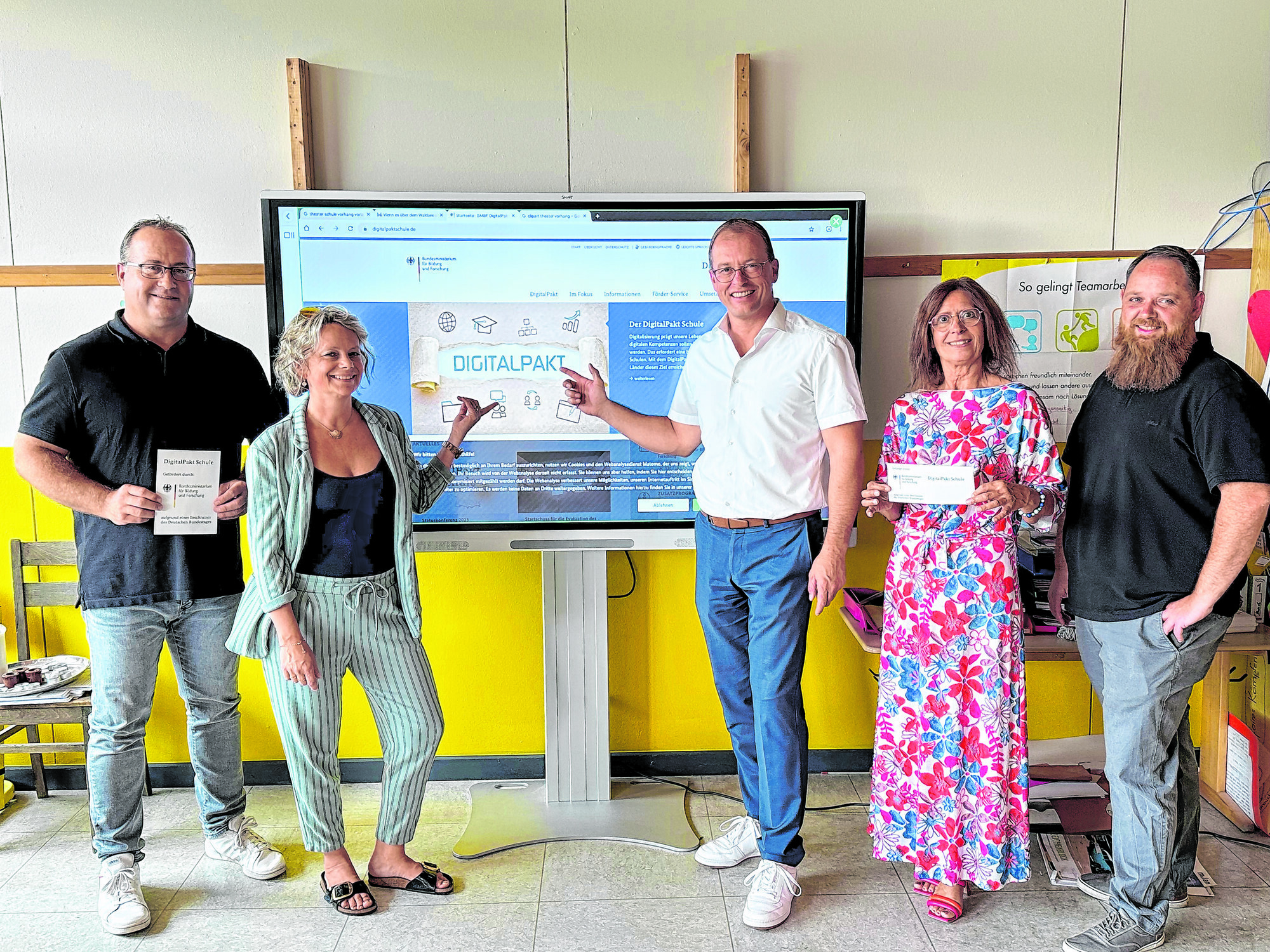 Die Maßnahme wird über den DigitalPaktSchule mit 207.989,05 Euro vom Bund gefördert. Das sind 90 Prozent der förderfähigen Gesamtkosten, die mit 231.098,94 Euro veranschlagt sind. Die verbleibenden zehn Prozent müssen vom Schulträger – in diesem Fall der Verbandsgemeinde Mendig – getragen werden. »Dabei wurde ein Glasfaseranschluss realisiert, die bestehende Netzwerkverkabelung durch zusätzliche Anschlüsse ergänzt und Netzwerkkomponenten wurden erneuert oder neu verbaut. Jeder Klassenraum hat einen eigenen WLAN-Accesspoint erhalten und alle vier Klassen haben ein Smartboard bekommen«, erklärte der Mendiger VG-Bürgermeister Jörg Lempertz bei der offiziellen Übergabe der digitalen Lernmittel.