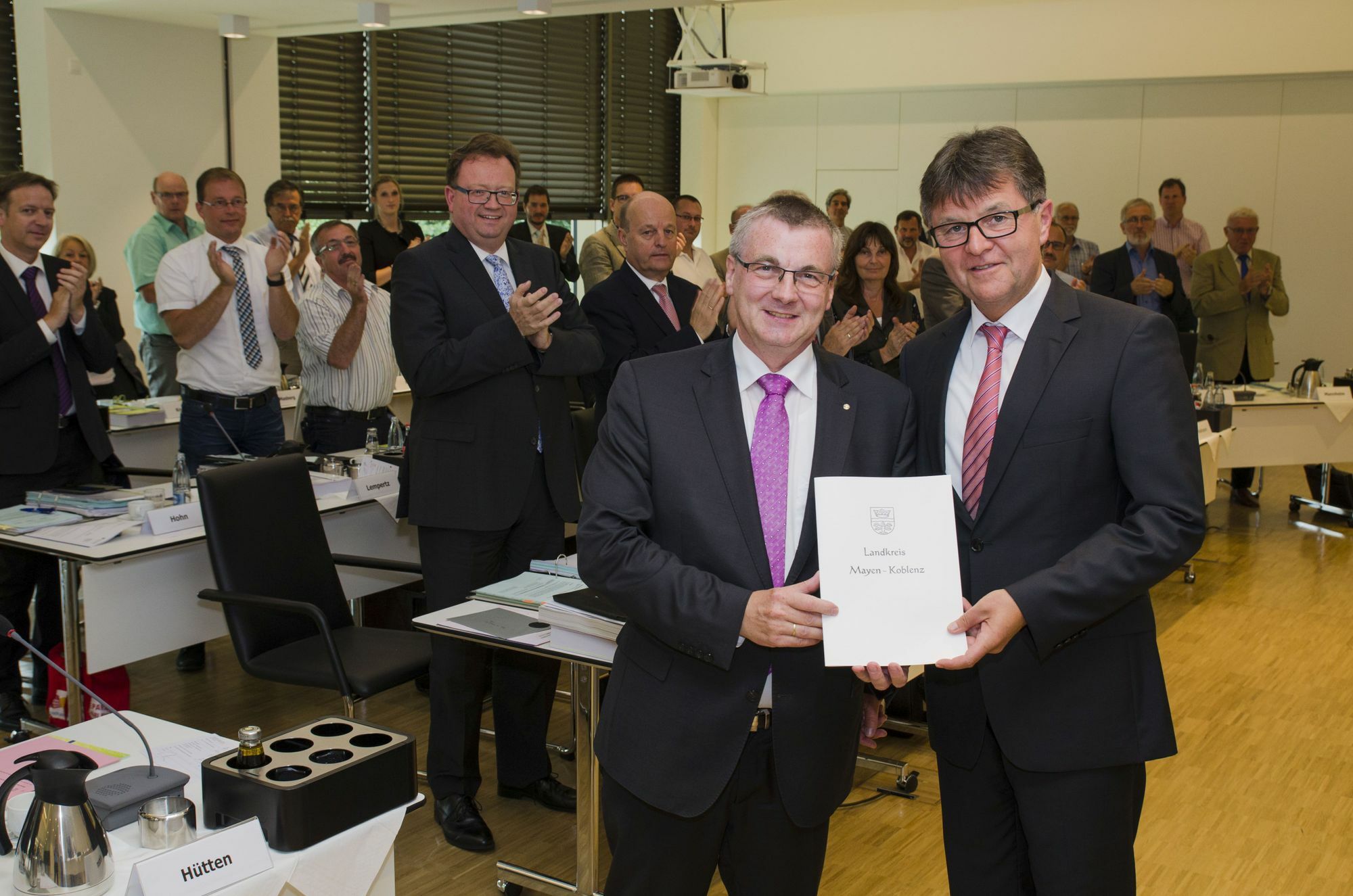 Nach der Wahl am 12. Juni, bei der er 88,3 Prozent der Stimmen erhalten hatte, bleibt Saftig mit dem jetzigen offiziellen Akt für weitere acht Jahre an der Spitze des Kreishauses. Nauroth betonte, Mayen-Koblenz stehe gut da: „Die Verwaltung arbeitet professionell. Die kommunale Familie hält zusammen und in den politischen Gremien arbeitet man am gemeinsamen Ziel, den Landkreis zukunftsfähig aufzustellen. Davon profitieren wir alle.“ Eine gute Wirtschaftslage, verbunden mit der niedrigen Arbeitslosenquote, die bestens ausgestattete Schullandschaft, den florierenden Tourismus mit ständig steigenden Übernachtungszahlen und die umfassende und erfolgreiche Familien- und Sozialpolitik nannte er als Beispiele. Saftig habe bewiesen, dass er „Landrat kann“. Über alle Parteigrenzen hinweg sei Saftig ein angesehener Kommunalpolitiker, Kollege und geschätzter Gesprächspartner. Anschließend überreichte Nauroth die Ernennungsurkunde, ehe die Vertreter aller Fraktionen dem Kreischef gratulierten. Foto: privat