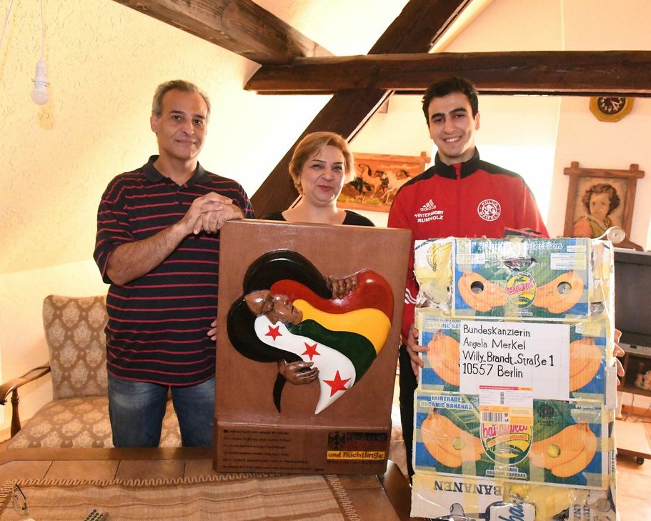 Mohamad, Nagris und Arash wollten eigentlich der Kanzlerin ein Geschenk machen. Die Flüchtlinge aus dem Iran sind dankbar, dass sie in Deutschland und nicht zuletzt die Kriegsflüchtlinge aus Syrien aufgenommen wurden. Das sollte das Geschenk von Mohamad, das die syrische und die deutsche Flagge zeigt dokumentieren. Gut gemeint, aber das Paket, das in Zeiten des Terrors schnell als mögliches Anschlagsobjekt ausgemacht wurde, sorgte zunächst für einen Großeinsatz der Polizei, die das Tankstellengelände absicherte. Letztlich ohne Not, denn ein auf Sprengstoff spezialisierter Polizeihund scghlug nicht an und der Absender konnte schnell identifiziert werden und das Paket öffnen - mit bekanntem Inhalt.
