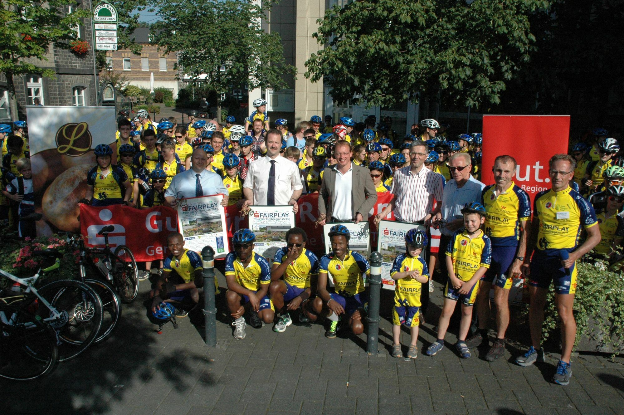 In diesem Jahr geht es von Mayen über Gillenfeld, Bütgenbach, Hosingen, Arlon, Luxemburg, Saarbrücken, Kusel nach Föhren. Jeden Tag werden rund 100 Kilometer erradelt. Dabei setzen sich die Schülerinnen und Schüler, Studentinnen und Studenten im Alter von zwölf bis 25 Jahren für Fairness und grenzüberschreitende Zusammenarbeit und offene Grenzen ein, tragen aber gleichzeitig auch einen aktiven Teil zur Entwicklungszusammenarbeit bei. So wird die Welthungerhilfe unterstützt, die unter anderem Projekte im rheinland-pfälzischen Partnerland Ruanda mit anschiebt. Die Organisatoren der Fairplay-Tour Herbert Ehlen, Sportlehrer an der Graf-Salentin Schule in Jünkerath, und Klaus Klaeren, Geschäftsführer der Europäischen Akademie des rheinland-pfälzischen Sports in Trier, wollen die Jugendlichen mit der Fair-Play-Tour für gleich mehrere Ziele sensibilisieren. Diese Ziele sind der faire Umgang miteinander, die Zusammenarbeit in und das Kennenlernen der Großregion und die Auseinandersetzung mit Projekten der Entwicklungszusammenarbeit. Auf der einwöchigen Fahrradtour, die kein Radrennen ist sondern im Team absolviert wird gilt: Die Stärkeren helfen den Schwächeren, sei es durch Motivation oder durch Anschieben am Berg. Im rahmen der Eröffnungsfeier in Mayen gibt es neben der Musik einer Trommlergruppe aus Ruanda auch akrobatische Einlagen mit Ein- und Hocheinrädern zu bestaunen. Foto: Archiv www.fairplaytour.de