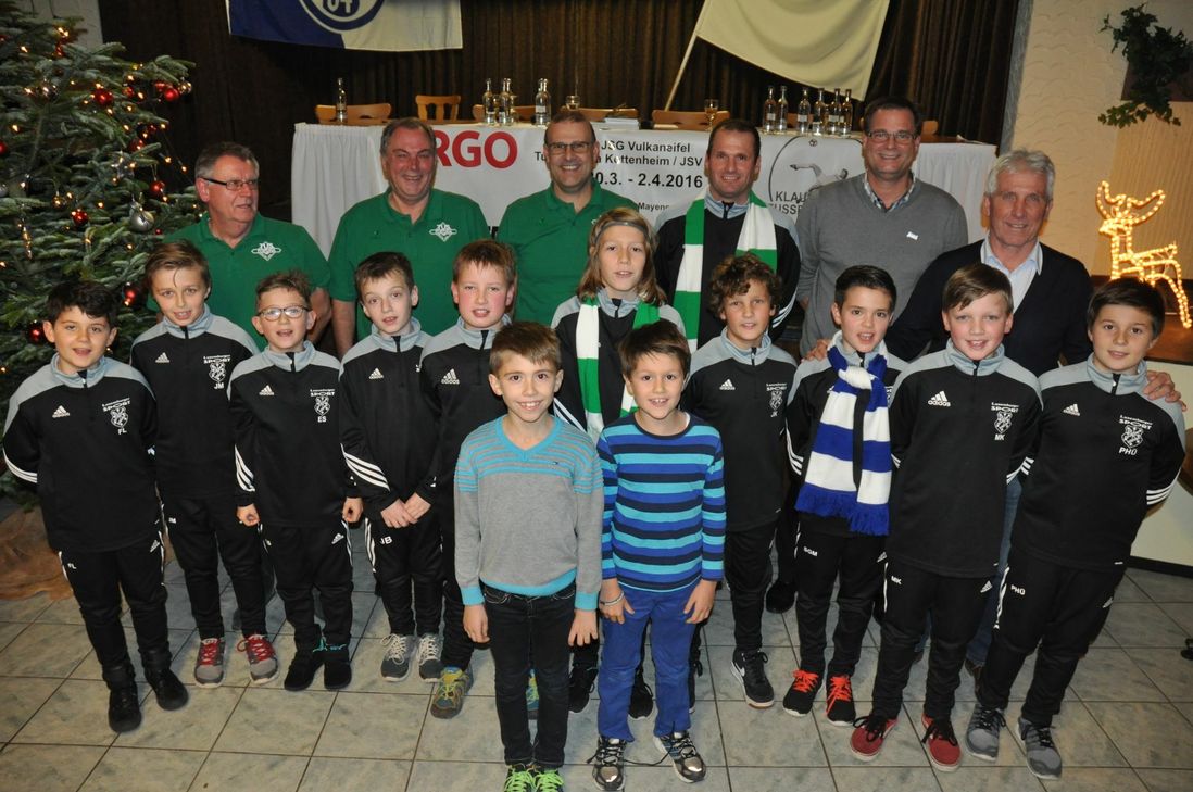 Nicht nur Fußballer schnalzen mit der Zunge, wenn sie das "Tor des Jahrhunderts" von Klaus Fischer (rechts) sehen, der 1977 im Länderspiel gegen die Schweiz - waagerecht in der Luft liegend - eine Flanke von Rüdiger Abramczik per Fallrückzieher verwandelte. Aus dem ehemaligen Torjäger, der unter anderem elf Jahre für Schalke 04 spielte, sprudelt auch heute noch der Ehrgeiz, den ein Profi haben muss. "Von nichts kommt nichts", so Fischer, der in seiner Fußballschule das Training mit dem Ball in den Vordergrund stellt. Im Waldstadion können Mädchen und Jungen der Jahrgänge 2001 bis 2009 vom 30. März bis zum 2. April 2016 seine Philosophie Fußball zu spielen kennenlernen. "Dass wir einen richtigen Weg gehen, zeigt uns die hohe Zahl an Wiederholern bei Vereinen, die wir schon häufiger besucht haben", ist sich Fischer sicher. Und dabei muss es auch nicht immer ernst sein. "Wer nicht aufpasst, geht mit schweren Armen nach Hause, denn der muss Liegestütze machen", flachst der Goalgetter. Foto: Pauly www.klaus-fischer-fussballschule.de www.tus-fortuna-kottenheim.de