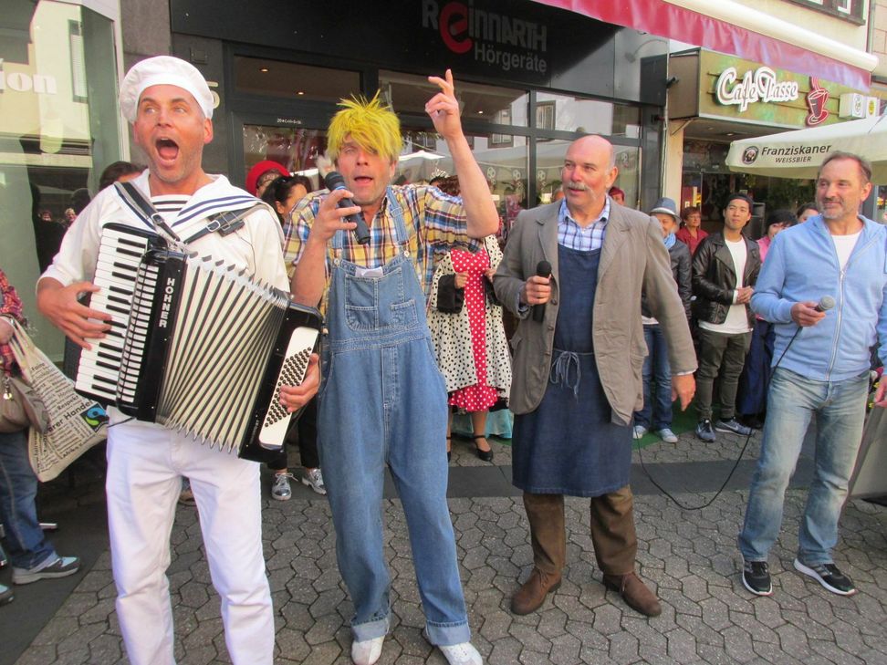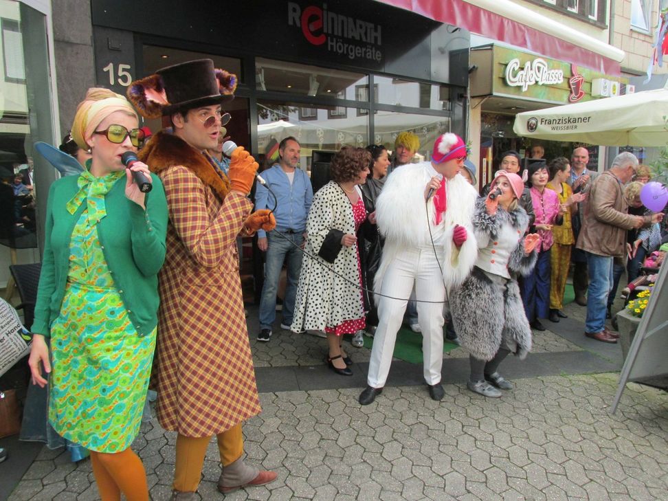 BrückenstraßenfestDabei wurden Kostproben der aktuellen Stücke »Pinocchio«, »M. Butterfly« sowie der am Samstag, 25. Juni, anstehenden Premiere von »Ewig Jung« geliefert. Das diesjährige Kinderstück über eine Holzpuppe, die zu einem richtigen Jungen werden will, lieferte das Thema, mit dem sich die Geschäfte und Cafés der Brückenstraße schmückten. Zusätzlich zu den Schauspielern der Burgfestspiele sorgten die Bands »Love is blue«, »redlips« und der Kinderchor »Sylvesterspatzen« für Unterhaltung. Bei Gewinnspielen, dem historischen Karussell, Kinderschminken sowie Basteleien und vielen anderen von »Pinocchio« inspirierten Aktionen wurden die Besucher zum Verweilen animiert. Den musikalischen Einstieg stellte eine Darbietung des Burgfestspielensembles dar. Die Gruppe präsentierte einen Querschnitt durch ihr Repertoire, zu dem neben dem Lied zum Kinderstück auch Auszüge des Musicals »Ewig Jung« gehörten. Es wurden zeitlose Songs, unter anderem ein Medley der größten »ABBA«-Hits, dargeboten, die mit tosendem Applaus von Groß und Klein honoriert wurden. Peter Nüesch prägt die Festspiele seit zehn Jahren. Oberbürgermeister Wolfgang Treis dankte ihm für seinen jahrelangen Einsatz und machte auf das diesjährige Programm aufmerksam. »Pinocchio« vermittele jungen und alten Besuchern die wichtige Lektion, »ordentlich mit der Wahrheit umzugehen.« www.mayen.de Fotos: von der Heiden
