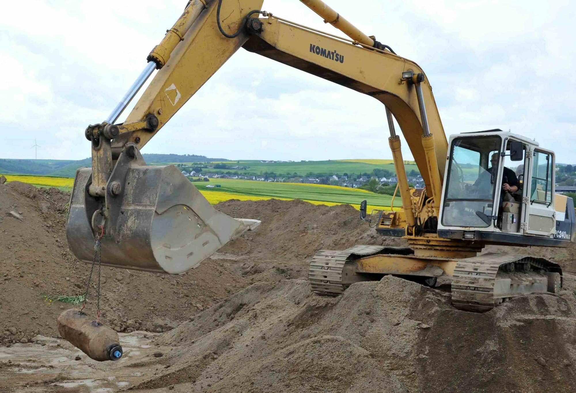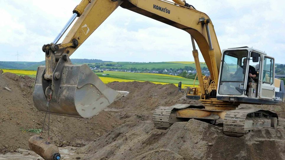 Einsatz für den Kampfmittelräumdienst Rheinland-Pfalz: Bei Baggerarbeiten ist am Mittwoch, 18. Mai, zwischen Mayen-Hausen und dem Straßburger Hof eine fünf Zentner schwere Fliegerbombe aus dem Zweiten Weltkrieg gefunden worden.