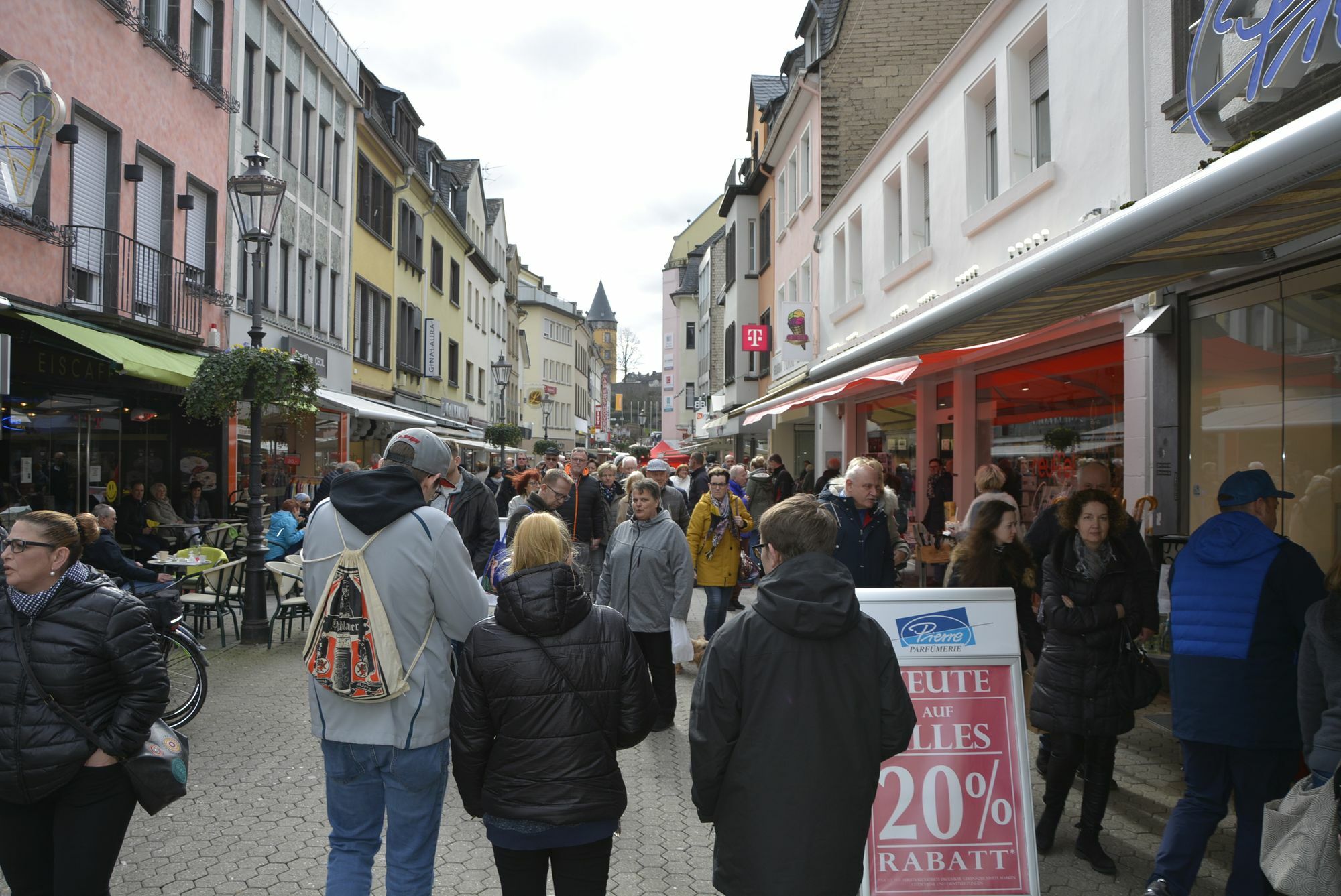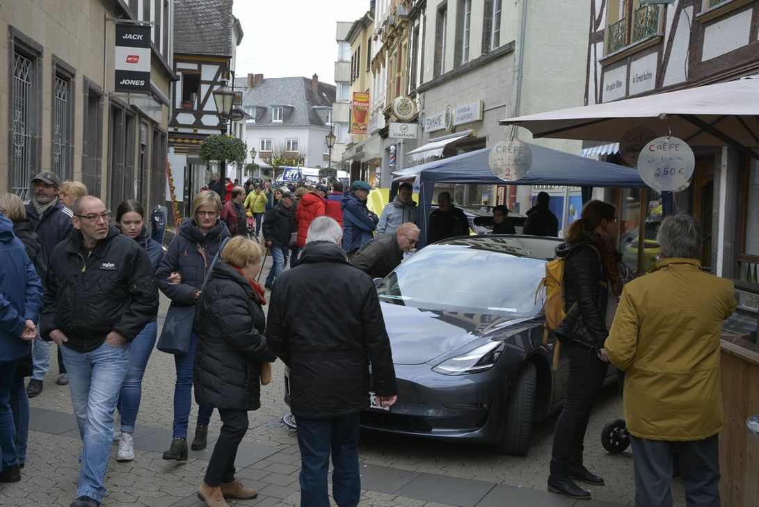 »Es reicht schon lange nicht mehr aus, nur die Geschäfte sonntags zu öffnen«, meinte jüngst Jürgen Nett, Mitglied der »MY-Gemeinschaft« mit der IHK Koblenz. »Die Leute erwarten ein Einkaufserlebnis. Mit der Idee, den verkaufsoffenen Sonntag mit E-Mobilität in den verschiedensten Facetten zu präsentieren, traf der Veranstalter den Geschmack des Publikums. Auf Frühling eingestimmt informierten sie sich über das Fahrradfahren, das durch den elektrischen Antrieb richtig Freude macht. Mitarbeiter von »Zweirad Ternes« beantworteten die vielen Fragen der Interessierten. Auch das »Sanitätshaus Prinz« war auf dem Marktplatz vertreten und stellte verschiedene Rollstühle vor. Wer sich über Autos mit umweltfreundlichen Antrieben informieren wollte, wurde bestens versorgt. Durch die gesamte Innenstadt - vom Marktplatz bis zum Brückentor - zogen sich die Angebote der renommierten Autohersteller. Die Mitarbeiter beantworteten bereitwillig die Fragen des Publikums. Die Geschäfte hatten sich bestens auf den verkaufsoffenen Sonntag vorbereitet und boten die modischen Neuheiten der Saison. Auch ließ sich manches Schnäppchen machen, denn einige Händler gaben einen »Sonntagsrabatt«, der gerne angenommen wurde. Aber auch weitere Infostände, wie die Rettungshundestaffel Rhein-Mosel oder das Friedensdorf, informierten über ihre Arbeit. Wer diesen verkaufsoffenen Sonntag verpasst hat, muss sich ein wenig gedulden, denn die nächsten Termine sind am 13. September, 11. Oktober, 29. November. Fotos: Kruft