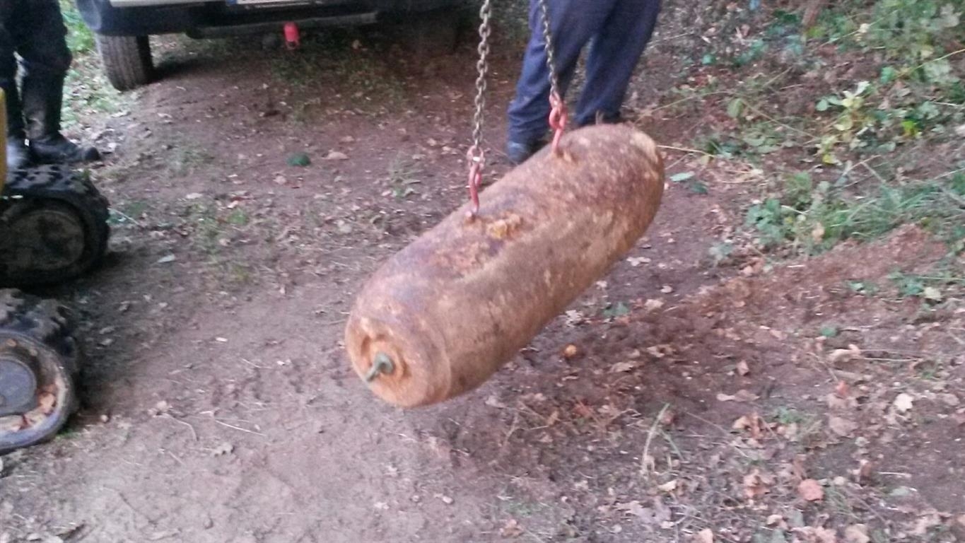 Der Kampfmittelräumdienst stellte fest, dass es sich um eine britische Fünf-Zentner-Bombe aus dem Jahr 1943 handelte. Da sich der für die Entschärfung zu räumende Gefahrenbereich lediglich über Feld- und Waldgelände erstreckte, musste keine Evakuierung eingeleitet werden. Nach rund 20 Minuten hatten die Spezialisten des Kampfmittelräumdienstes den Zünder demontiert und konnten Entwarnung geben. Foto: Polizei