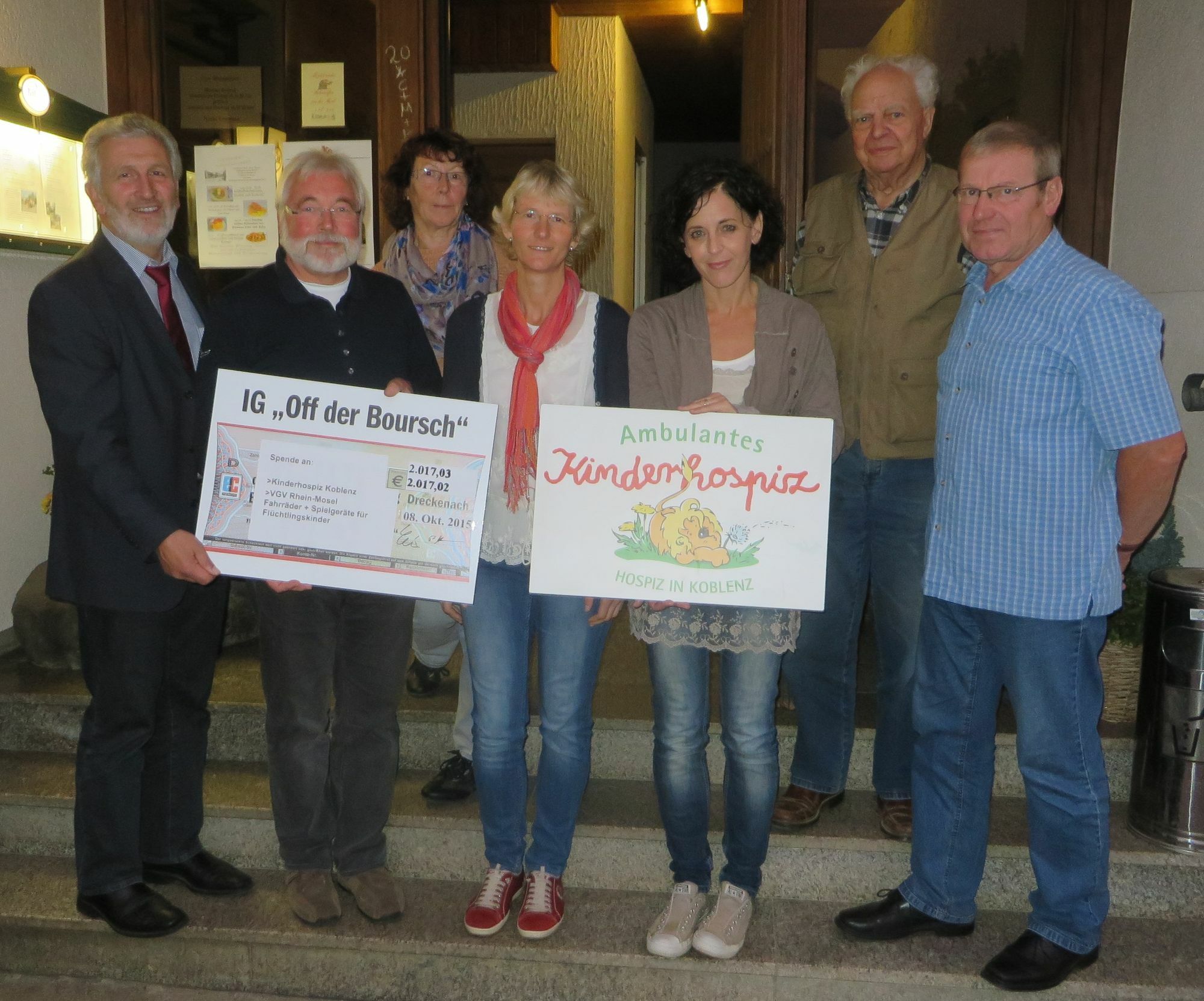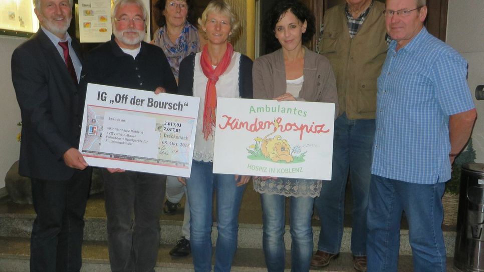 Der gesamte Festerlös vom "34. Bourschfest" in Dreckenach in Höhe von 4.034,05 Euro ist zu gleichen Teilen an das Ambulante Kinderhospiz Koblenz und an die Hilfe für Flüchtlingskinder in der VG Rhein-Mosel übergeben worden.