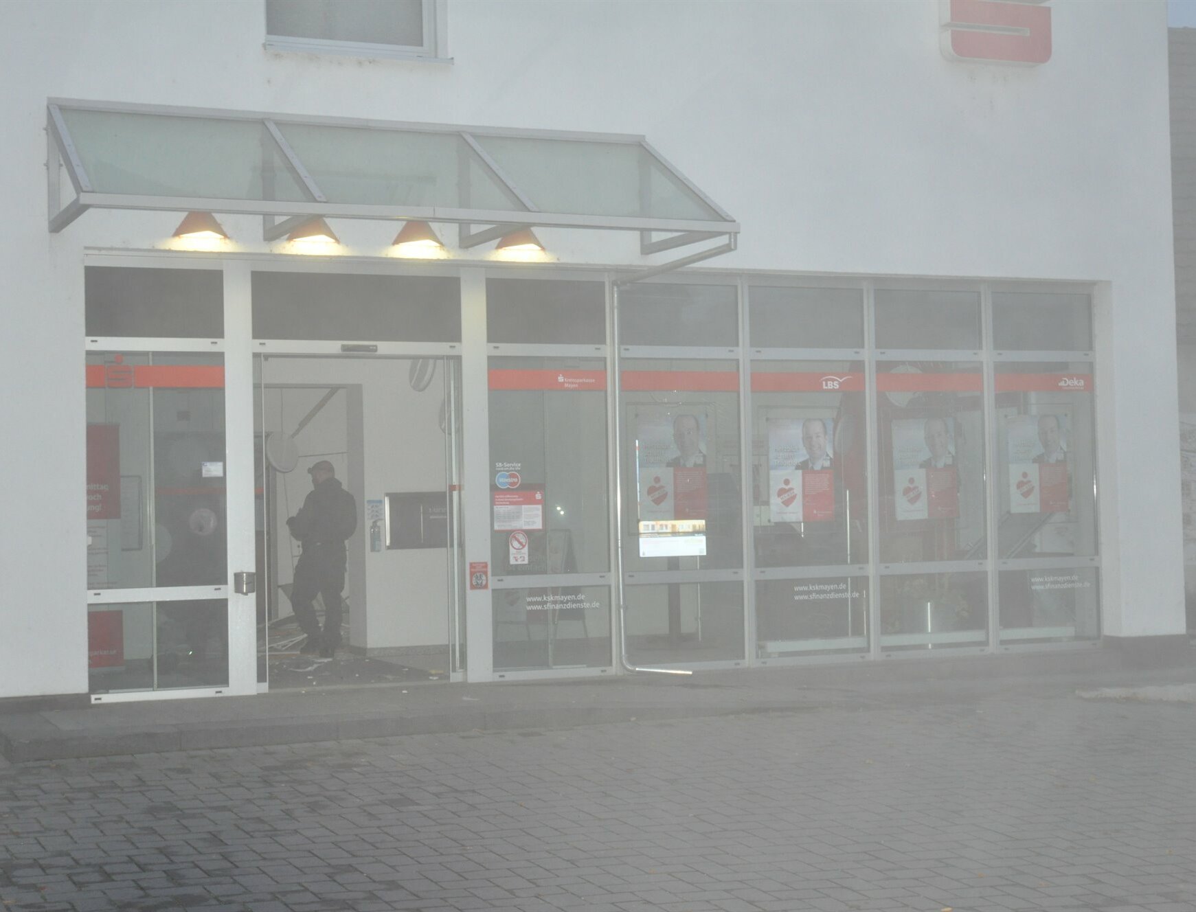 Ochtendung. In der Filiale der "Kreissparkasse Mayen" in der Oberpfortstraße ist am frühen Donnerstagmorgen, 29. September, gegen 1.40 Uhr, der Geldautomat gesprengt worden. Die Polizei hat umgehend die Fahndung eingeleitet und wendet sich mit der Bitte um Mithilfe an die Öffentlichkeit.