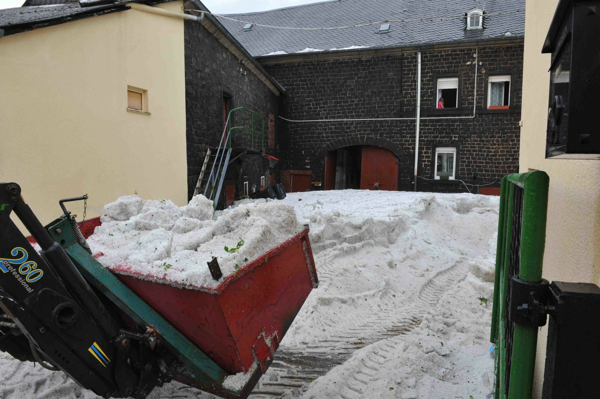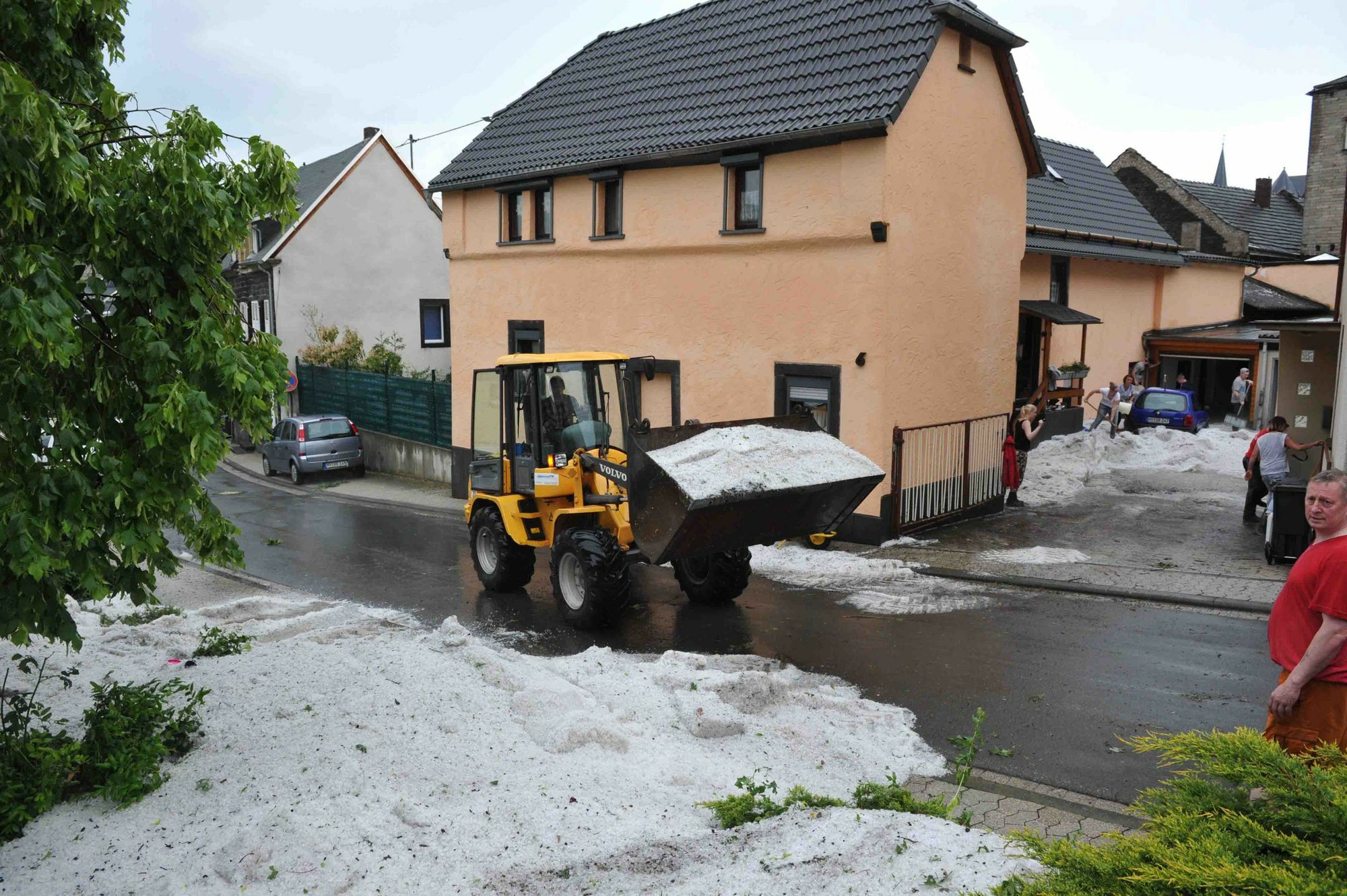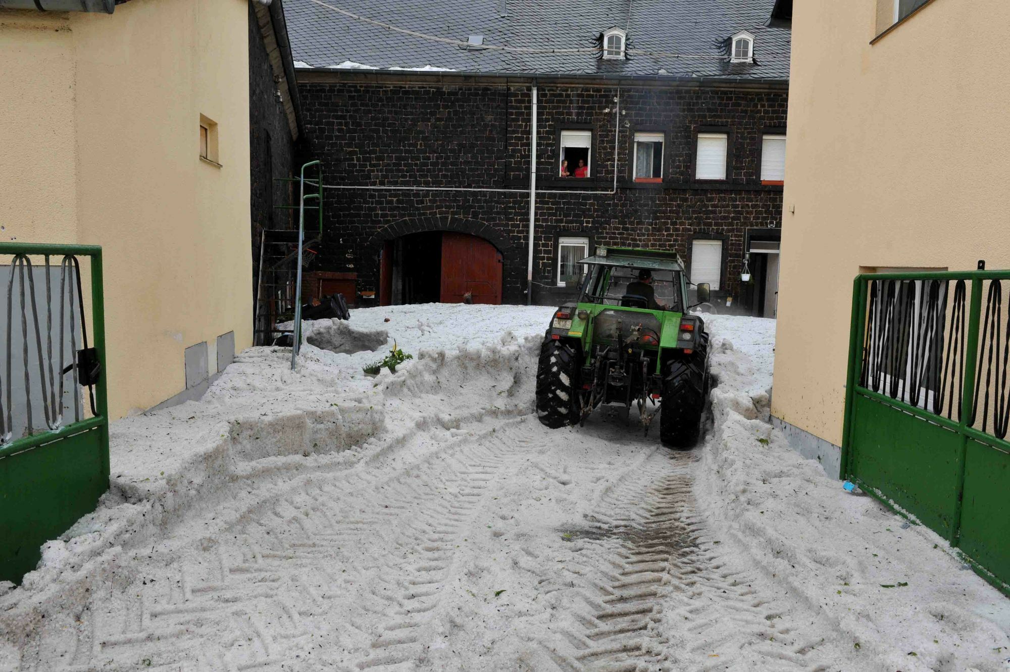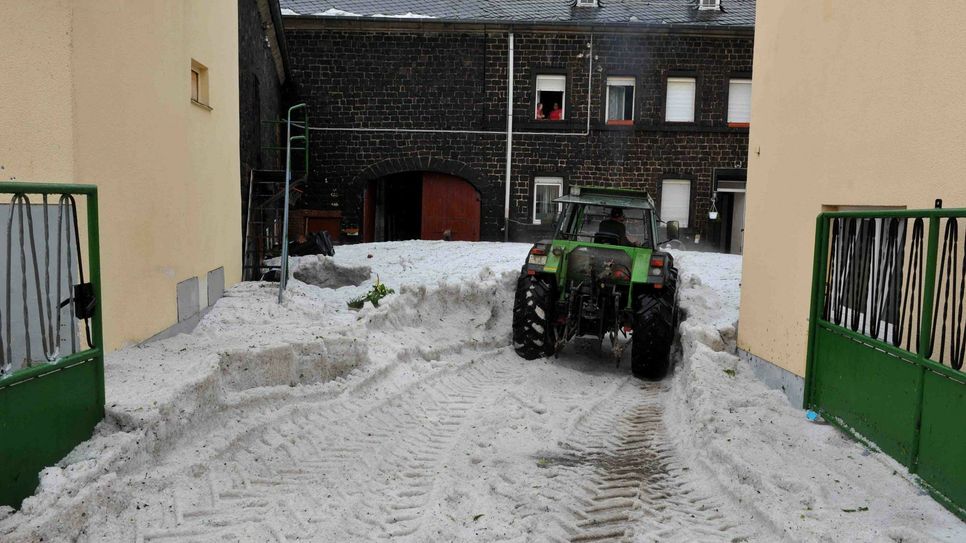 Ein Gewitter hat am Freitagnachmittag einen Hagelsturm über Mendig ausgelöst. Binnen weniger Minuten türmte sich die Eiskristalle auf mehr als einen Meter Höhe.