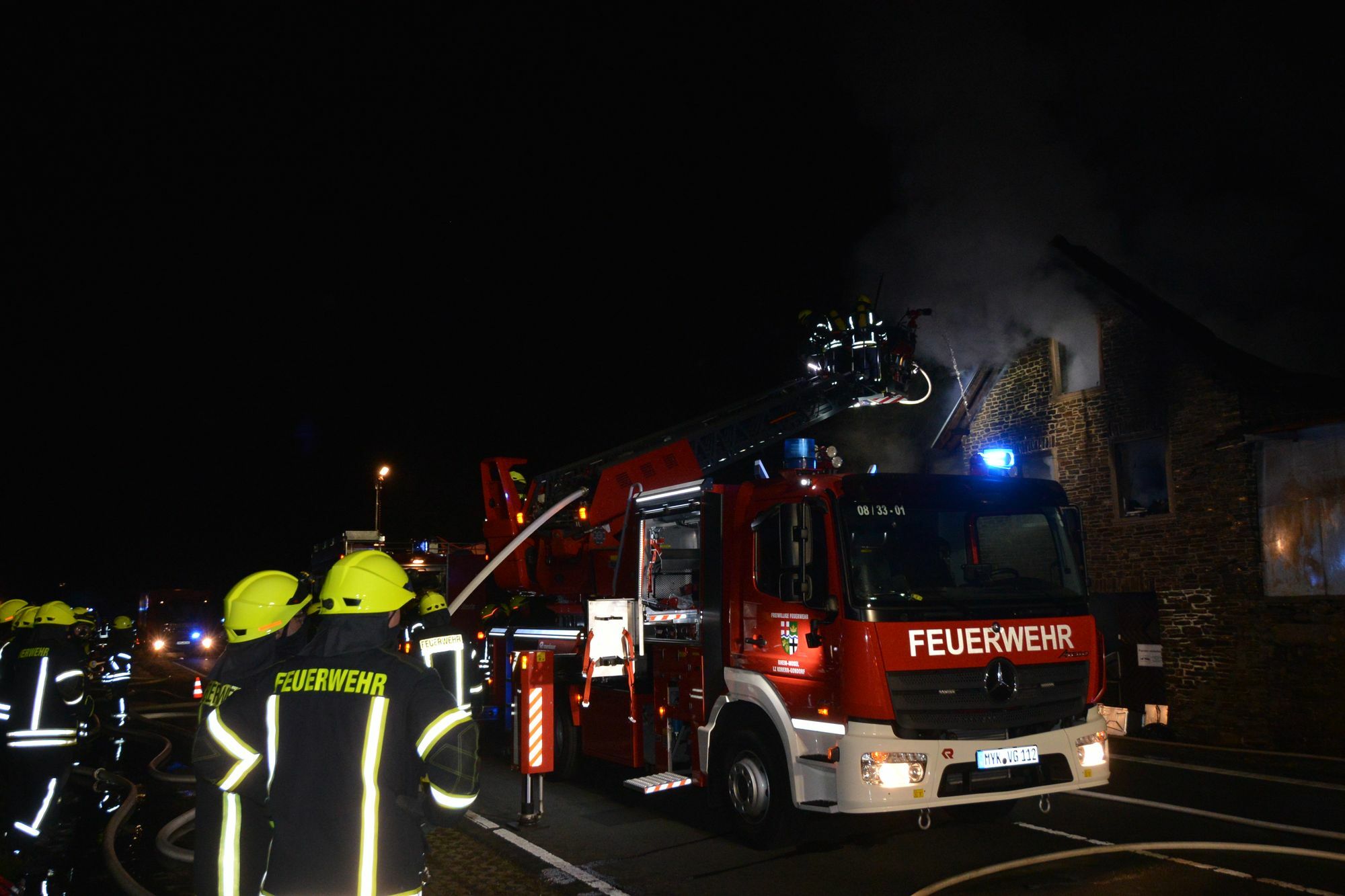 Heute Nacht wurden die Feuerwehren rund um Burgen an der Untermosel alarmiert. An der B 49 zwischen den Ortschaften Treis-Karden und Burgen stand gegen 4.30 Uhr ein Einfamilienhaus in Vollbrand. Nach Polizeiangaben sind zur Stunde noch die umliegenden Feuerwehren, Rettungsdienst und Kräfte der Polizei Koblenz im Einsatz. Das freistehende Gebäude mit Anbau wurde erheblich beschädigt. Die B 49 ist aufgrund der Löscharbeiten momentan in beide Fahrtrichtungen zwischen Burgen und Treis-Karden gesperrt. Zur Brandursache kann laut Polizei Koblenz derzeit noch keine Angaben gemacht werden.