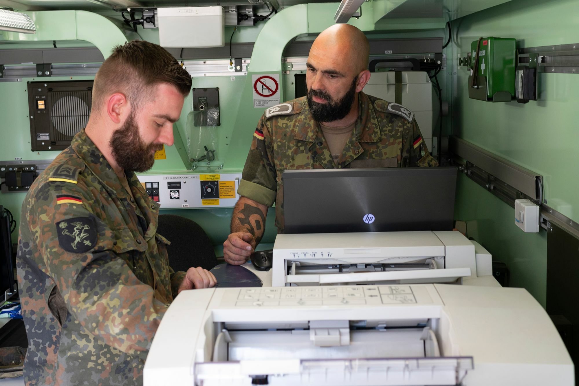 Sie räumen Keller leer, schippen Schlamm oder organisieren zum Beispiel Hydraulikflüssigkeit für die Vielzahl an Baumaschinen im Gebiet. Wertvolle Dienste, um "Herr der Situation zu werden", leisten auch Stromaggregate und Lkw der Bundeswehr. Aber eine spezielle Fähigkeit der Truppe aus Mayen erwies sich als besonders nützlich, an einem Ort, an dem vieles nicht mehr funktioniert. Gemeint ist das autonome Drucken. Mediengestalter-Feldwebel erzeugen in einer mobilen Druckerei-Kabine unentbehrliche Orientierungshilfen in Form von Karten. Sie enthalten zum Beispiel Warnhinweise für gefährliche Bereiche im Katastrophengebiet, aber auch Informationen für Waschmöglichkeiten, Verpflegungsstellen oder auch Anlaufstellen für Hilfesuchende. Im Ergebnis wurden Verkehrsschilder oder Häusermarkierungen gedruckt, die der Polizei, dem THW und der Feuerwehr dabei helfen auf veränderte Verkehrsbedingungen oder einsturzgefährdete Häuser hinzuweisen. In enger Abstimmung mit den örtlichen Behörden, anderen Einsatzkräften und Hilfsorganisationen, ist binnen kürzester Zeit ein Lagezentrum aufbaut worden. In diesem laufen zwei Stränge zusammen: Zum einen als Anlaufpunkt für alle Altenburgerinnen und Altenburger die Hilfe brauchen, zum anderen als Koordinationszentrum für alle Hilfskräfte. Leutnant Tristan Reichelt fasst im Lagezentrum alle aktuellen Veränderungen an einer Lagewand zusammen. Zwei Mal täglich tauschen sich zudem alle Hilfs- und Einsatzkräfte aus. Tagsüber gilt es zu räumen und Schäden in Stand zu setzen, während nachts die Schlammmassen abtransportiert werden. Im Ergebnis seien die Straßen im Ort sehr schnell wieder passierbar gewesen, wie sich Leutnant Reichelt erinnert. Schritt für Schritt werden die sichtbaren Ausmaße der Naturkatstrophe kleiner. Aber trotz der überwältigenden Solidarität vieler Menschen, Organisationen und Unternehmen der Region werde noch für eine lange Zeit Hilfe notwendig sein. "Solange die Bundeswehr hier gebraucht wird, sind auch die helfenden Hände der ZOpKomBw-Truppe in Altenburg zur Stelle", heißt es von der Truppe. Fotos: Bundeswehr/Neuhaus