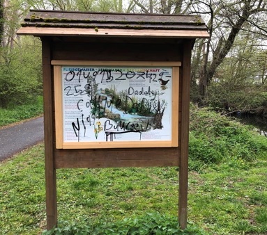 Auf einem Radweg in Mayen - in der Verlängerung der Gerberstraße - ist am ersten Mai-Wochenende ein Hinweisschild beschmiert worden.