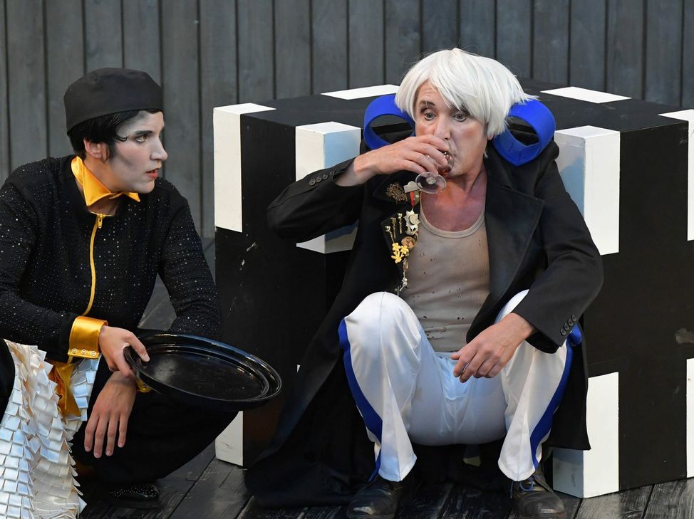 Die Die Aufführung bei den Mayener Burgfestspielen hatte alles, was eine gute Komödie ausmacht: unerwartete Wendungen, Verstrickungen und Täuschungen. Die Zuschauerinnen und Zuschauer erlebten den Widerspruch von Schein und der Wirklichkeit. Dabei jagte ein Gag den nächsten - oft von Szenenapplaus bedacht. »Ein humorvoller Abend«, meinte eine Besucherin. Ein Ehepaar beschrieb es so: »Wir wussten worauf wir uns einlassen, Komödie ist nicht so unsere Sache. aber wir haben die Schauspieler schon bei dem Familienstück ,Die Schöne und das Biest‘ erlebt und finden sie einfach toll.« Die Schauspieler sind mit einer Ausnahme, Oliver Jaksch als Schöller, der erstmals in Mayen dabei ist, alte Bekannte aus den letzten Jahren. Georg Lorenz kann gar auf ein Dutzend Festspiel-Jahre zurückblicken und begeisterte als schrulliger Major von Mühlen der davon überzeugt war, dass der Krieg nach seiner Strategie hätte gewonnen werden können. Er traf auf weitere skurrile Typen, wie die die Schriftstellerin Josefine Zillerthal (Saskia Kästner,) den Kellner beziehungsweise Franzi (Alessa Kordeck), Ida Klapproth (Wiebke Isabella Neulist), Professor Bernhardy (Andreas Schneider), Alfred (Marius Schneider) und Philipp Klapproth (Charles Ripley), die sich in der Berliner »Pension Schöller« beziehungsweise in dem Nervensanatorium einfanden. Bespielt wurden wieder zwei Ebenen mit einem Bühnenbild von Steven Koop, das schwarz-weiße Würfel als Utensilien in vielseitigsten Varianten nutzte. Für Lacher sorgte der »Möchtegern-Schauspieler« Eugen (Matthias Manz), der kein »L« sprechen konnte und stattdessen immer das »N« aussprach. Auch dies löste sich wie auch die übrige Handlung am Ende positiv auf. Es war dem Publikum anzuspüren, dass es sich nach der langen Zeit des Lockdowns und dem daraus resultierenden Verzicht aus Kultur, danach sehnte, einmal wieder einen unbeschwerten, sorgenfreien Abend verbringen zu dürfen. Das ist Carola Söller mit ihrer schwungvollen Inszenierung perfekt gelungen. Für die Dramaturgie zeichnete Intendant Daniel Ris verantwortlich. Die Kostüme von Gabriele Kortmann waren wieder einmal sehr fantasievoll und detail-verliebt umgesetzt. ?