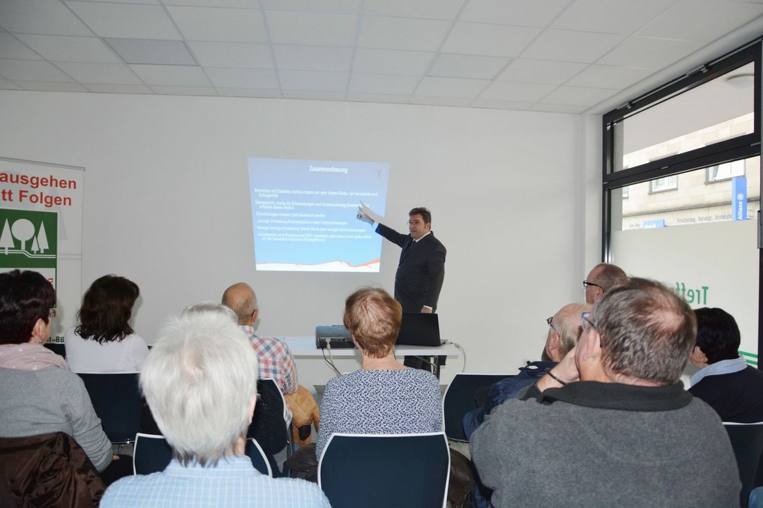 Dr. Bernhard Landers referierte im Medizinischen Versorgungszentrum (MVZ) Mayen über das Thema „Diabetes mellitus Typ2: Gleiche Behandlung immer gleich gut?“. Entscheidend für den Krankheitsverlauf sei eine schnelle Diagnose, um frühzeitig eine effektive Behandlung einleiten zu können, laut Dr. Landers. Wie aber sollten Patienten idealerweise nach einer Diabetes Typ2-Diagnose behandelt werden? „Es gibt nicht die Wahrheit in der Medizin, viele Wege führen nach Rom“, sagte Dr. Landers einführend. Entscheidend seien individuelle Therapieansätze, die auf die Bedürfnisse der Patienten abgestimmt sind, um bestmöglich helfen zu können. Denn nicht nur die Untersuchungsergebnisse, sondern auch das Wohlbefinden des Patienten sei von Bedeutung. Ziel ist es schließlich auch, die Lebensqualität zu erhalten. Besonders die Bedeutung von Bewegung und Ernährung betonte Dr. Landers: „Wer früh anfängt, bleibt länger fit.“ Dabei solle der Patient individuell entscheiden, was realistisch machbar sei, so Landers. „Wichtig ist der Spaß an der Bewegung.“ www.gesund-schoen-und-fit.de Foto: Klinkenberg