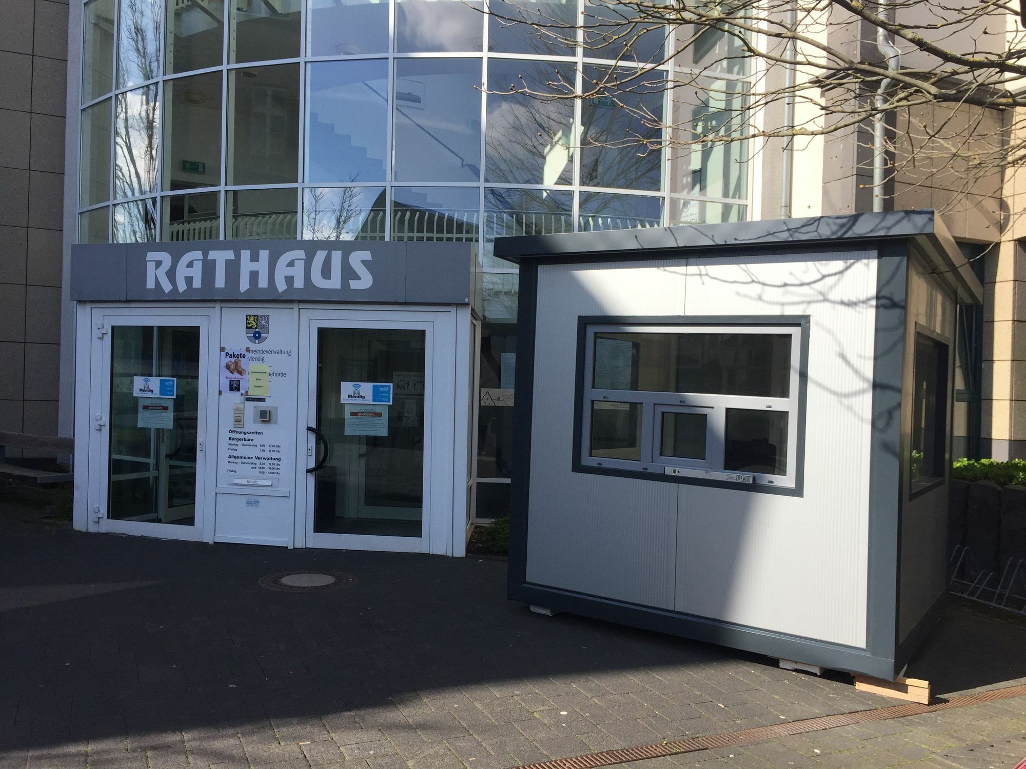 Getrennt durch eine Glasscheibe - ähnlich einem "Kassenhäuschen" - haben Bürgerinnen und Bürger, die mit Anträgen oder anderen Fragen die VG-Verwaltung aufsuchen, jetzt die Möglichkeit die Dinge kurz mit einer Mitarbeiterin beziehungsweise einem Mitarbeiter zu klären. Sollte ein Anliegen keinen Aufschub dulden, werde Kontakt zu dem entsprechenden Sachbearbeiter hergestellt, der sich dann in einem extra eingerichteten Raum, unter Beachtung der derzeitigen Hygienebestimmungen, den Problemstellungen annehme. So gewährleiste die Verbandsgemeinde Mendig die weitere Bearbeitung vonotwendigen Anliegen. Die Verwaltung bittet aber weiterhin darum, dass jeder prüft, ob sein Anliegen Aufschub duldet oder ob es auch telefonisch oder per E-Mail mit der Verbandsgemeindeverwaltung geregelt werden kann. Foto: VG Mendig www.mendig.de
