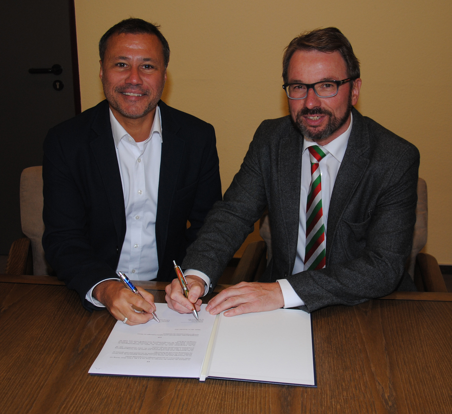 Daniel Ris tritt die Nachfolge von Peter Nüesch an, dessen Intendanten-Tätigkeit nach zehn Jahren mit Ablauf der Burgfestspiele 2016 enden wird. Nach dem Studium an der Westfälischen Schauspielschule Bochum folgten Engagements als Darsteller in Dortmund, Bielefeld und Frankfurt am Main. Als Ensemblemitglied am Theater Konstanz begann er 1996 zu inszenieren. Seit 1998 arbeitet er freiberuflich. Als Schauspieler war er unter anderem an den Staatstheatern in Stuttgart und Hannover, an der Neuköllner Oper Berlin und am Deutschen Schauspielhaus Hamburg engagiert. Seit einigen Jahren hat er bereits Erfahrungen im Freilichttheater gesammelt. Als Regisseur war er auf der Wilhelmsburg in Ulm, als Darsteller bei den Gandersheimer Domfestspielen und am See-Burgtheater Kreuzlingen in der Schweiz, sowie mehrfach als Darsteller und Regisseur bei den Burgfestspielen Bad Vilbel tätig. Neben seiner Theaterarbeit schloss er 2011 ein Kulturmanagementstudium der Universität Zürich ab. Seine Master-Arbeit "Unternehmensethik für den Kulturbetrieb" ist die erste wissenschaftliche Auseinandersetzung mit dem Thema und erschien 2012 im Springer VS Verlag. Seit 2013 gehört er zum Kernteam der Initiative "art but fair". Seit 2003 lebt Daniel Ris in Berlin. "Ich habe bei den bisherigen Treffen einen sehr positiven Eindruck von Daniel Ris gewonnen und freue mich auf eine gute und kreative Zusammenarbeit, die sicherlich unsere Burgfestspiele noch weiter nach vorne bringen wird", so Oberbürgermeister Wolfgang Treis. Foto: Stadt Mayen/Jasmin Franz www.mayen.de