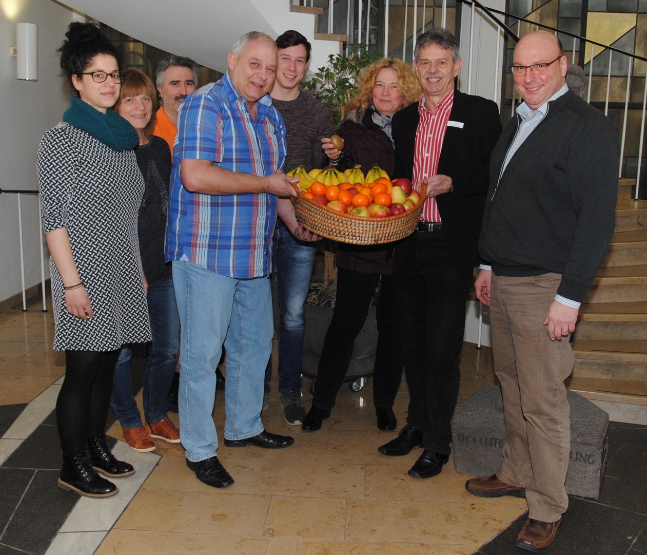 Jeden Dienstag gibt es jetzt einen gesunden Snack für die Mitarbeiterinnen und Mitarbeiter. Im Eingangsbereich des Rathauses wartet ein gut gefüllter Obstkorb mit Äpfeln, Bananen, Mandarinen und Kiwis. Auch die Außenstellen der Stadtverwaltung bekommen von Sarah Sondermann, die als Mitglied des BGM-Arbeitskreises den Obsttag initiiert hat, frische Früchte geliefert. Der Obstkorb ist nur eine von vielen gesundheitsfördernden Maßnahmen, die der Arbeitskreis BGM initiiert hat. So können die Mitarbeiter zum Beispiel auch Rückenkurse besuchen, Yoga erlernen oder einmal wöchentlich das Mayener Nettebad nutzen. Außerdem wird im Juli bereits der 3. Gesundheitstag, in diesem Jahr unter dem Titel: "Herz - am Puls der Gesundheit" mit vielen Angeboten, durchgeführt. Foto: Jasmin Franz/Stadt Mayen www.mayenzeit.de