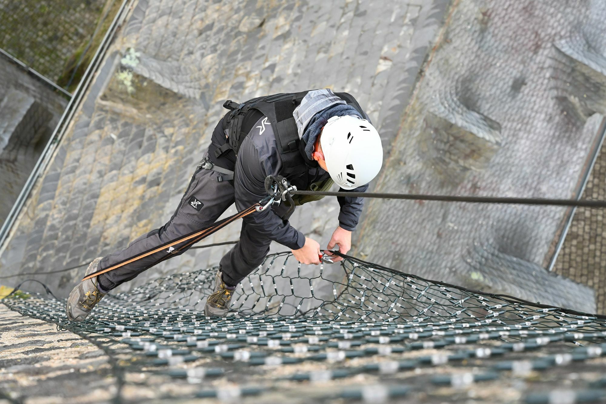In Schwindel erregender Höhe - 36 Meter - befindet sich der Arbeitsplatz von Oliver Maus aus Hausen und Frank Burchardt aus Kottenheim.