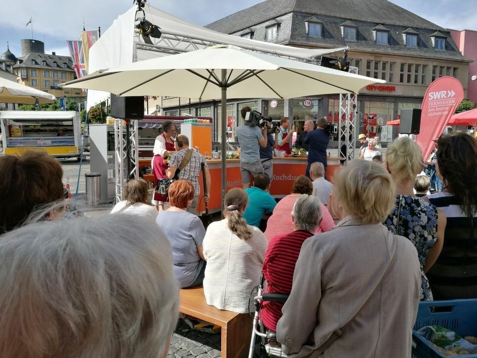 Der Marktplatz in Mayen ist zum Drehort geworden: Das SWR Fernsehen zeichnete auf dem Wochenmarkt eine neue Folge der Reihe "MarktFrisch" auf, die am Donnerstag, 31. August, 18.15 Uhr, im SWR Fernsehen Rheinland-Pfalz gezeigt wird.